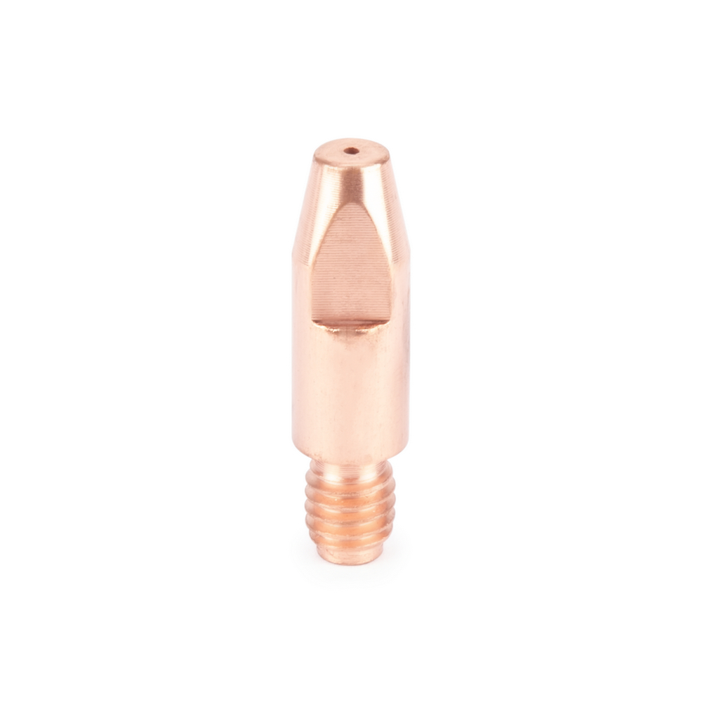 Сплав с повышенной износостойкостью - медь, хром, цирконий Расходная часть для горелок MIG-24/25/36. Аналог TRAFIMET MD0009-78, BINZEL 140.0054. Для стальной проволоки. Размер - М6. Диаметр проволоки - 0,8 мм.