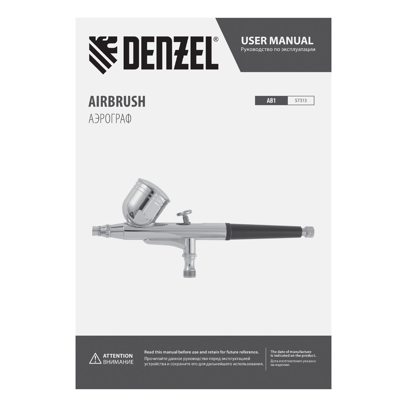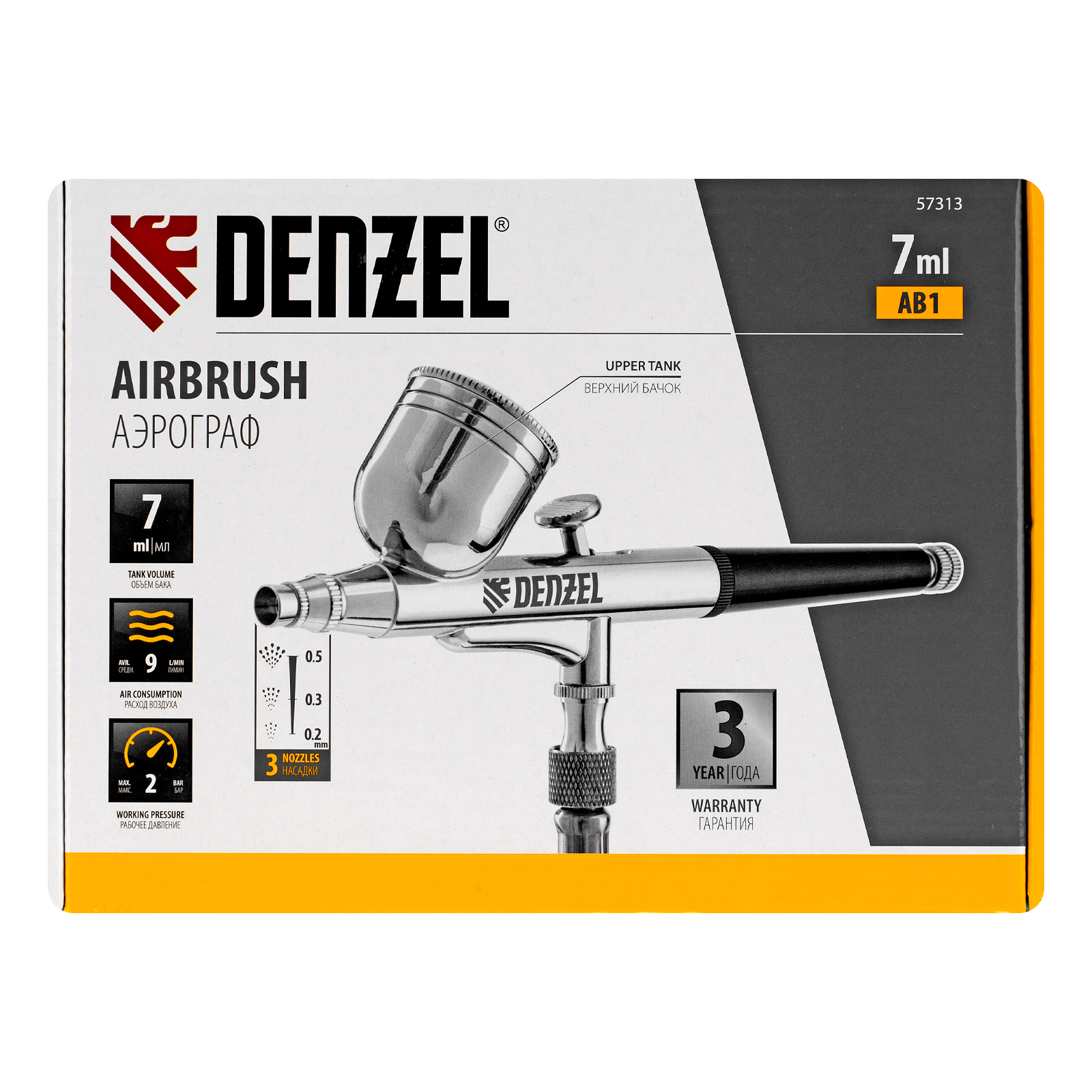 Аэрограф с верхним бачком AB1, 0.2/0.3/0.5 мм, 7 мл, 9 л/мин Denzel в Москве