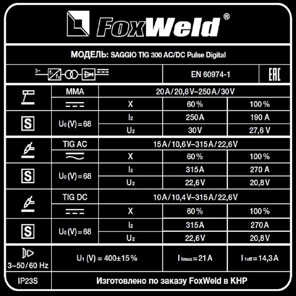 Аппарат аргонодуговой сварки SAGGIO TIG 300 AC/DC Pulse Digital