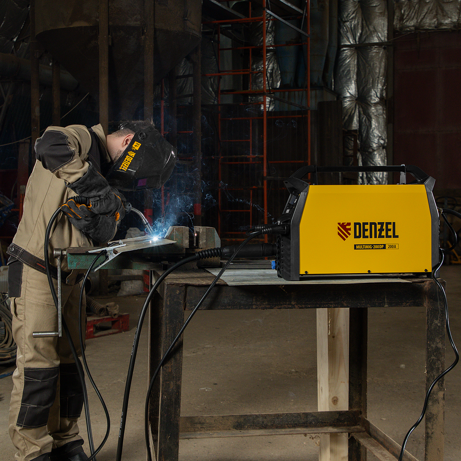 Аппарат инвертор. полуавтомат. сварки MultiMIG-200DP Synergy Double Pulse, 200 А, ПВ 80% Denzel в Москве