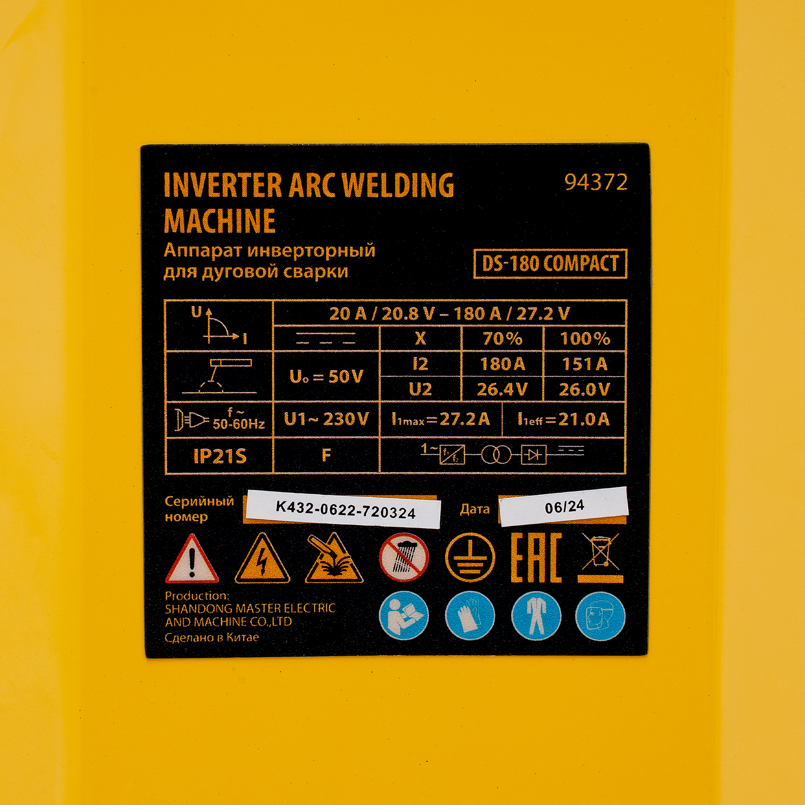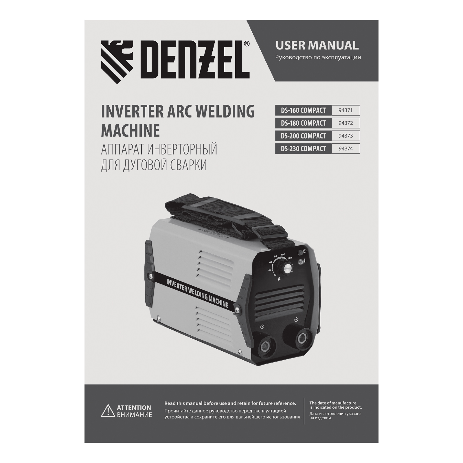 Аппарат инверторный дуговой сварки DS-180 Compact, 180 А, ПВ 70%, диаметр электрода 1.6-4 мм Denzel в Москве