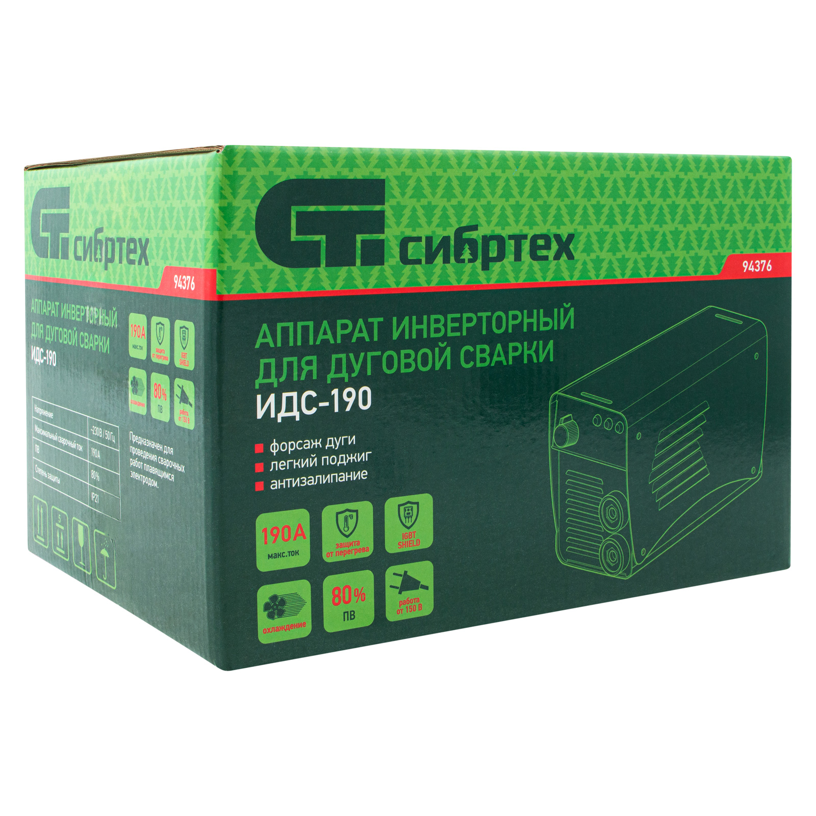 Аппарат инверторный дуговой сварки ИДС-190, 190 А, ПВ 80%, диаметр электрода 1.6-4 мм Сибртех в Москве