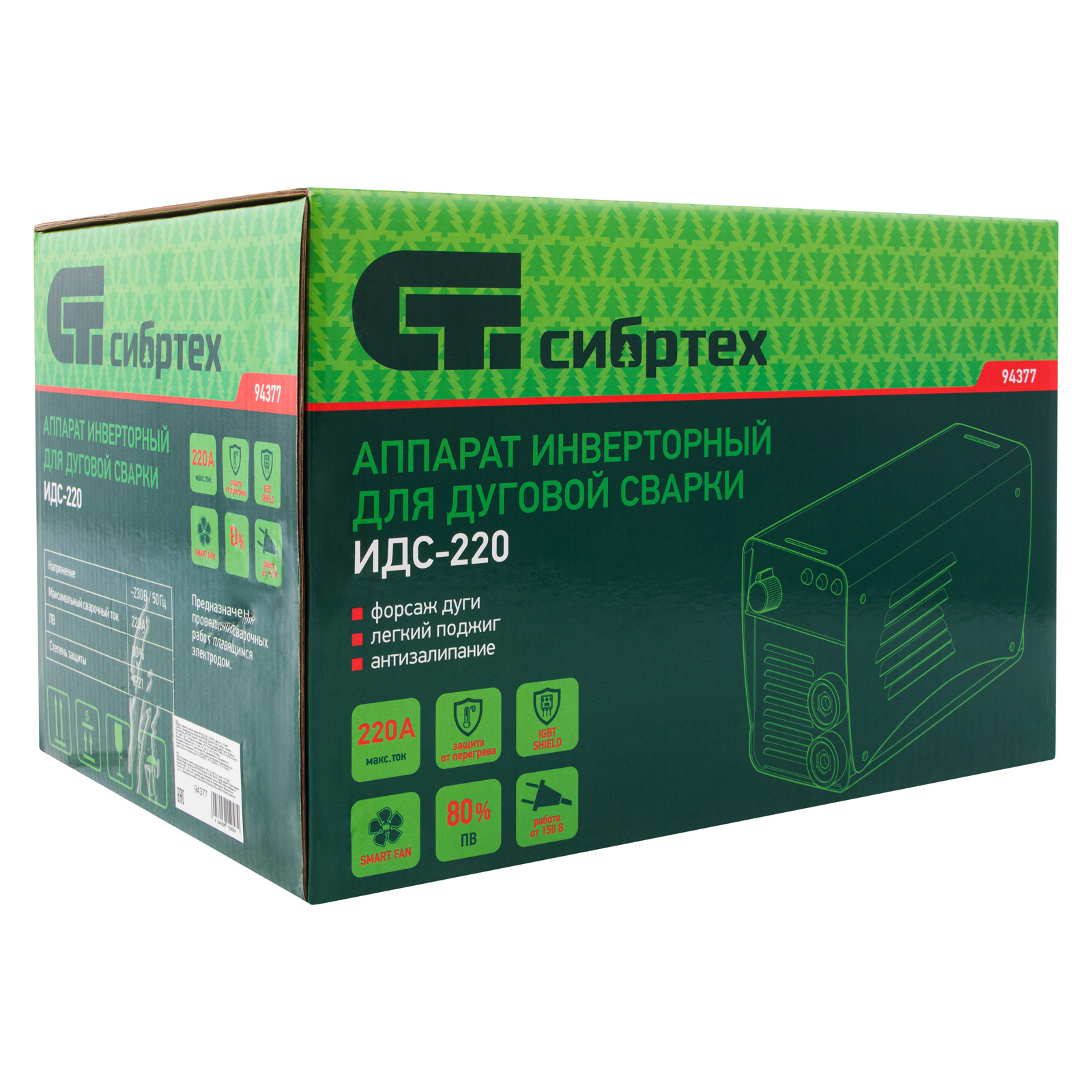 Инверторный аппарат дуговой сварки ИДС-190K, 190 А, ПВ 80%, диаметр электрода 1,6-4 мм Сибртех в Москве