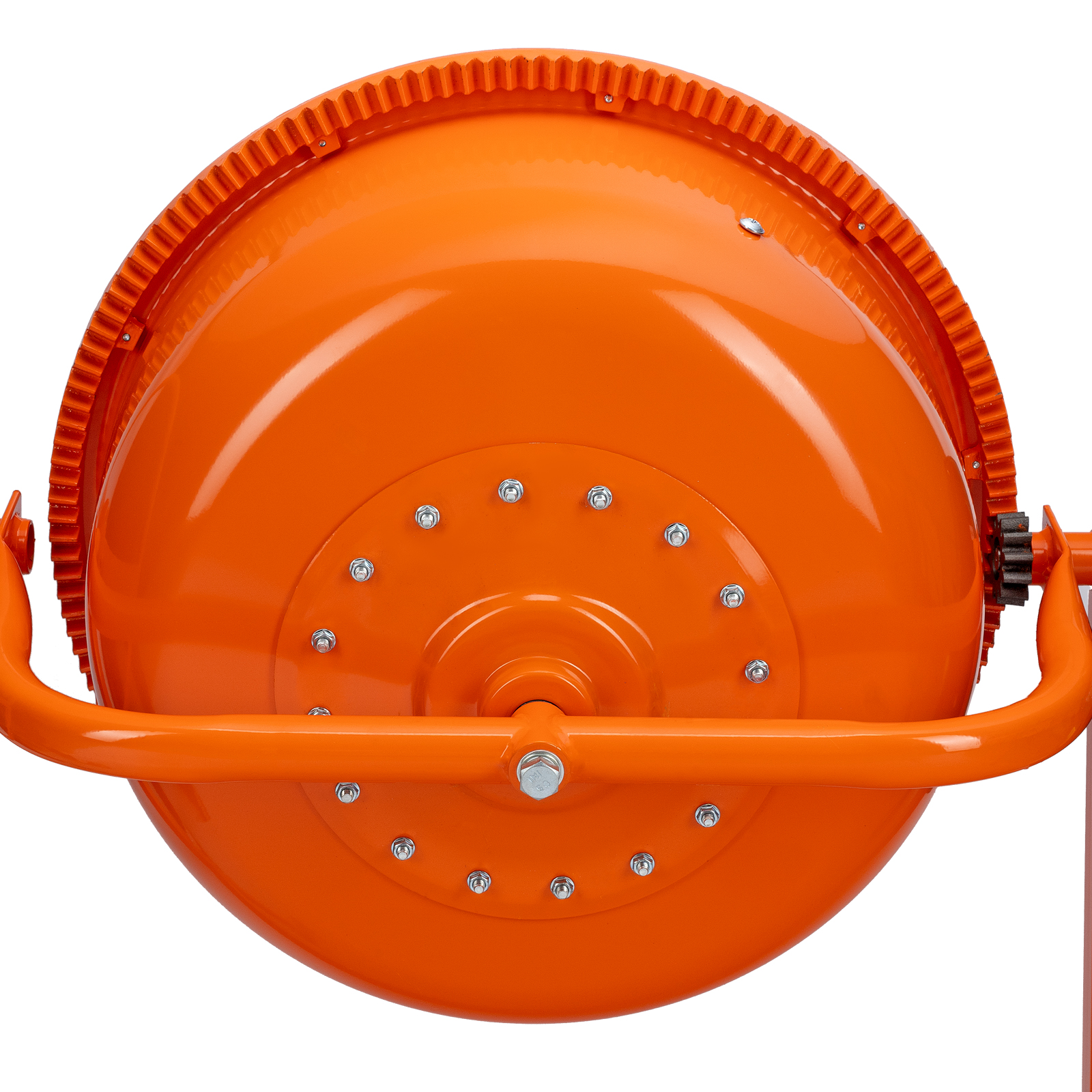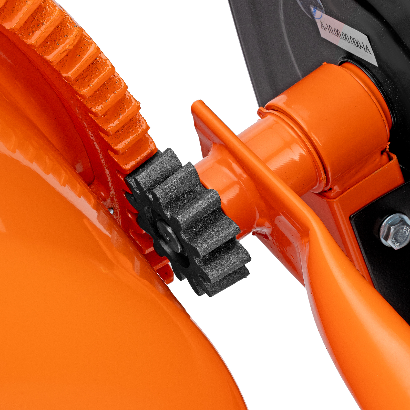 - Удобная загрузка и выгрузка смеси — барабан наклоняется при помощи маховика и легко фиксируется в нужном положении.