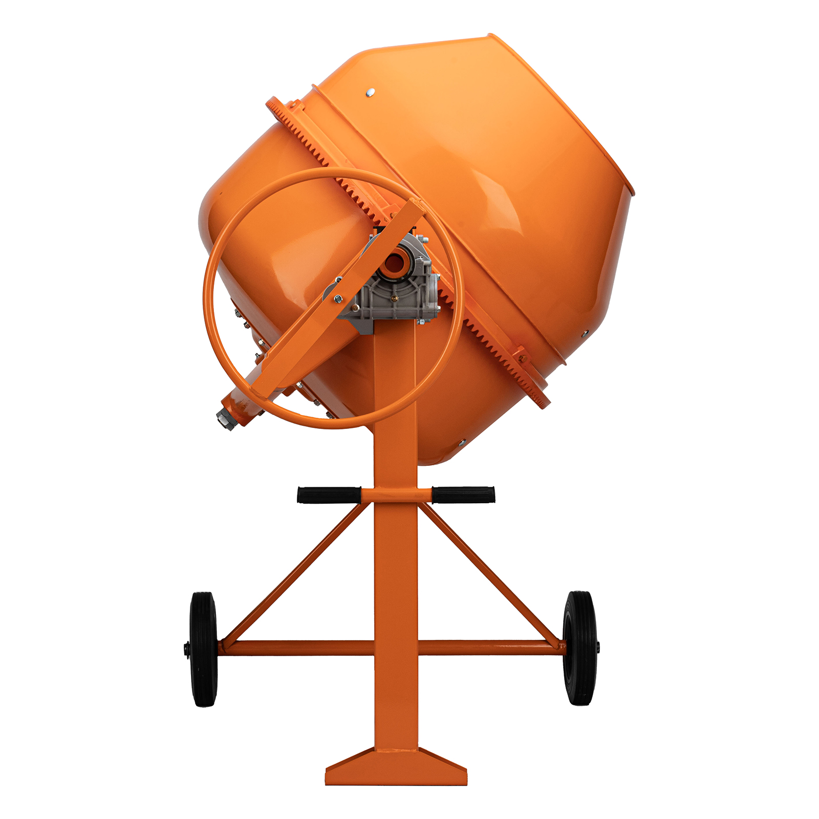 - Мобильность — благодаря двум большим колесам бетономешалку легко перемещать по строительной площадке