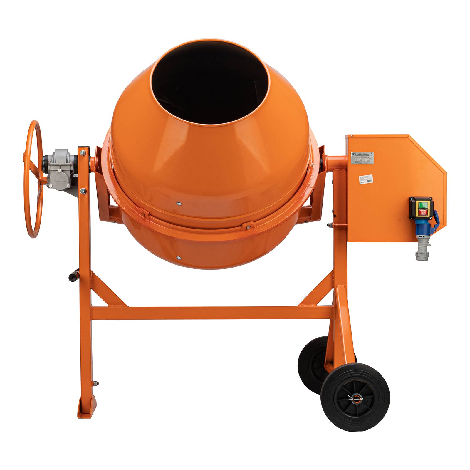 - Простое управление — удобный механизм опрокидывания и фиксации наклона барабана упрощает загрузку, перемешивание и выгрузку смеси.