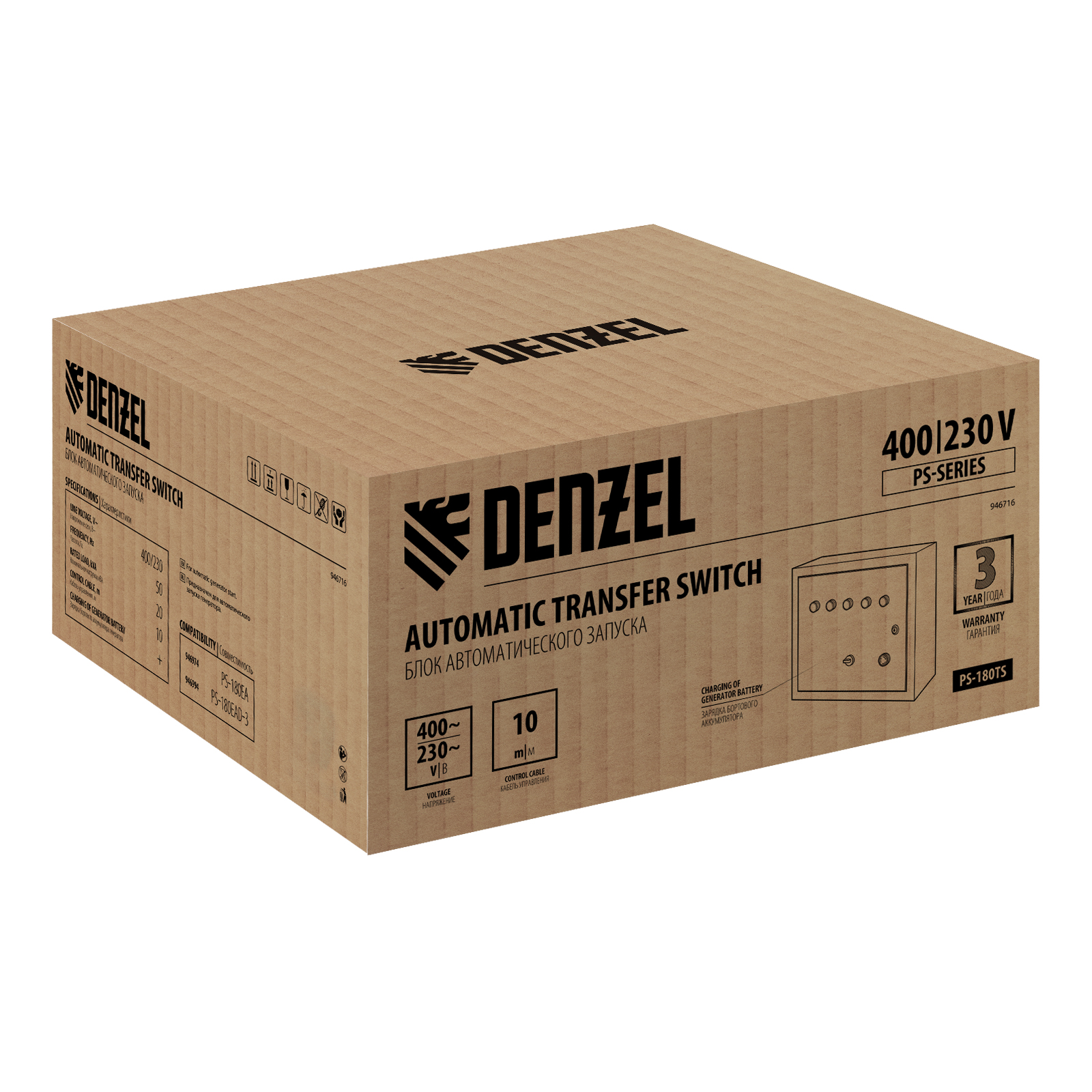 Блок автоматического запуска Denzel PS-180TS 946716 используется совместно с генератором PS-180EA или PS-180EAD-3. Позволяет создать систему автономного электроснабжения. Блок управления переключает питание на генератор при падении напряжения в стационарной сети, а при восстановлении электроснабжения останавливает генератор и переключает питание объекта обратно на сеть. Устройство рассчитано на нагрузку 20 кВА и будет полезно в загородном доме и на строительной площадке.