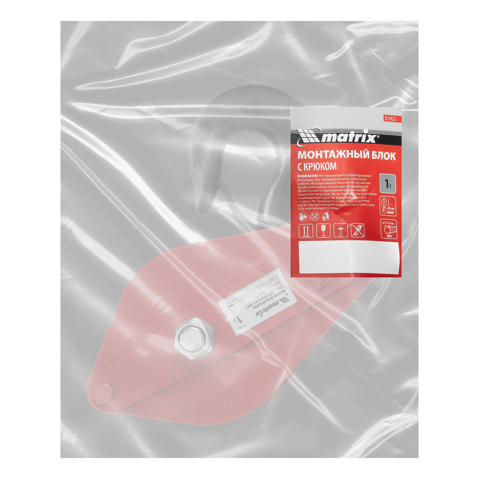 Блок монтажный с крюком, 0.5 т Matrix
