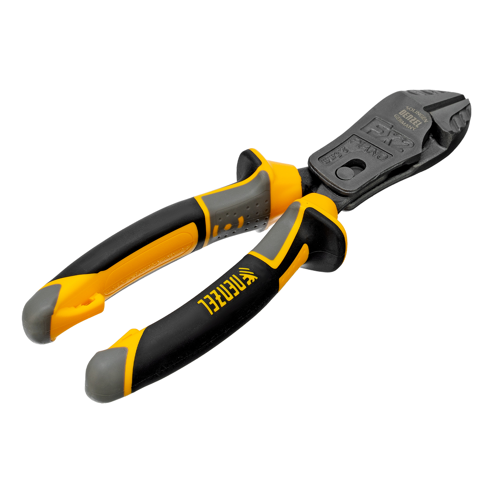 Усиленные бокорезы Denzel 17785 длиной 180 мм, с трехкомпонентными рукоятками, предназначены для разрезания кабелей, проводов, гвоздей и проволоки средней (750 Н/мм2) и высокой жесткости (1800 Н/мм2) диаметром 4 и 2,8 мм соответственно. Подходят для резки рояльных струн (предел прочности 2300 Н/мм2) диаметром до 2,5 мм. Успешно справляются не только с медными, алюминиевыми и пластмассовыми деталями, но и с более жесткими стальными элементами. Встроенный рычажный механизм и смещенный непосредственно к режущим кромкам шарнир увеличивают усилие реза на 50%.