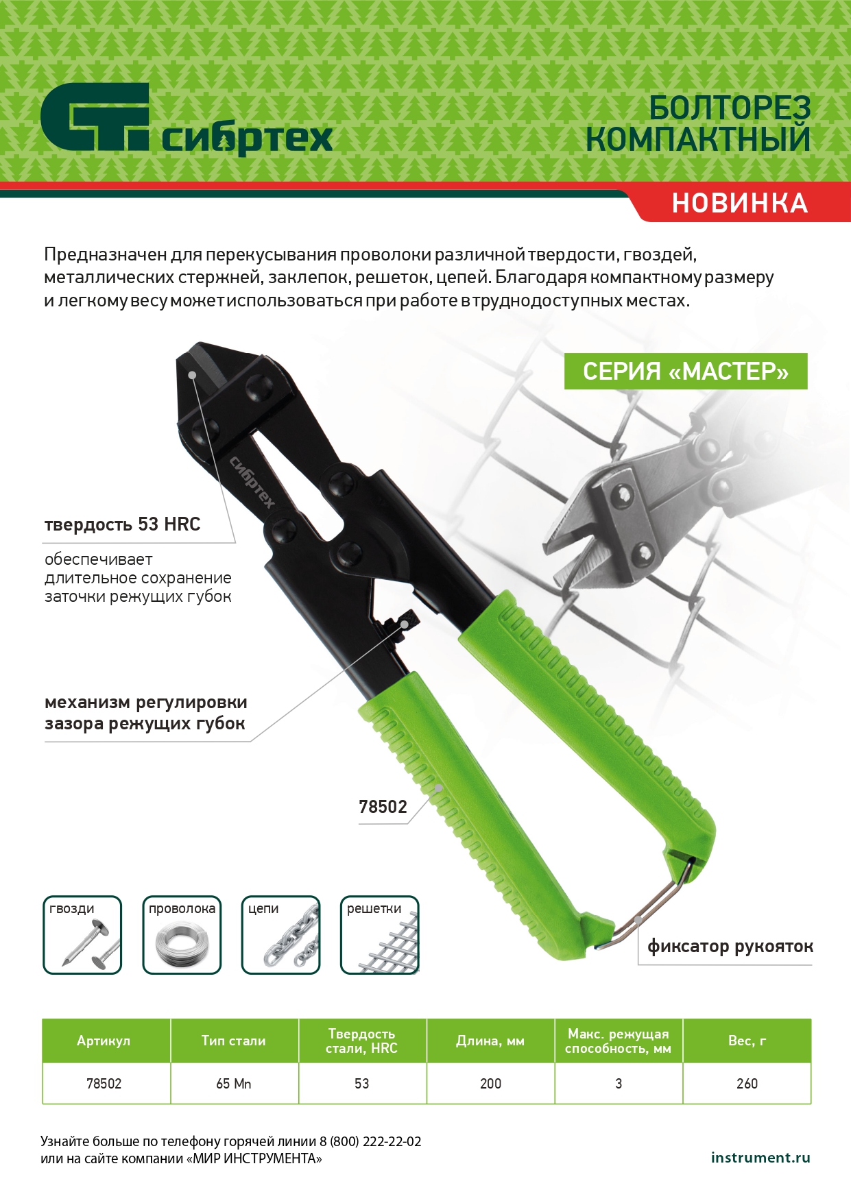 Болторез компактный, 200 мм - 8", 65Mn Сибртех в Москве