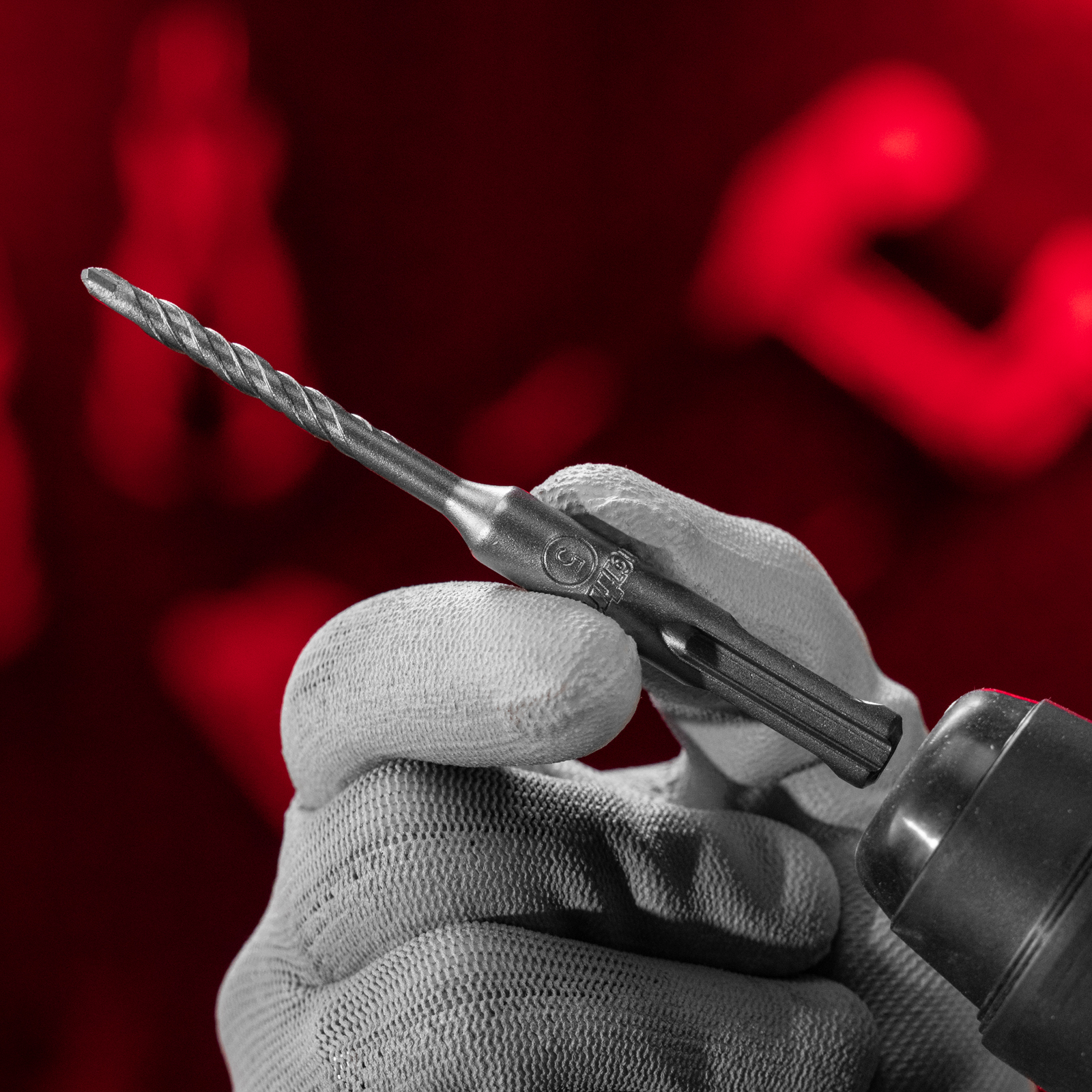 - Рабочая часть изготовлена из легированной стали 40Х с добавлением хрома, поэтому инструмент устойчив к высоким нагрузкам, возникающим при ударном сверлении.