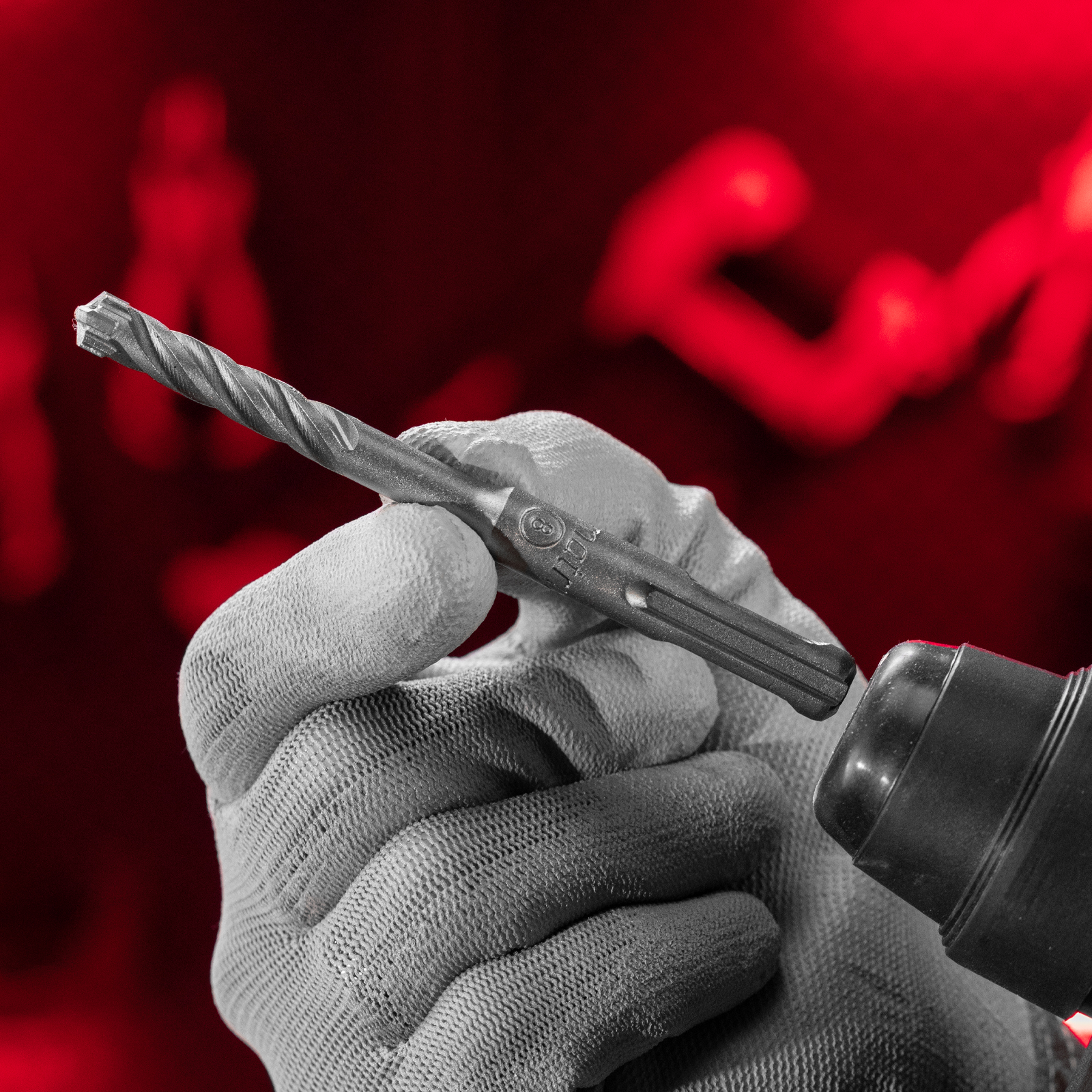 - Высокий ресурс — крестовая режущая пластина из сверхтвердого сплава карбида вольфрама 80–90 HRC долговечна, эффективно сверлит камень и не ломается при попадании в арматуру.