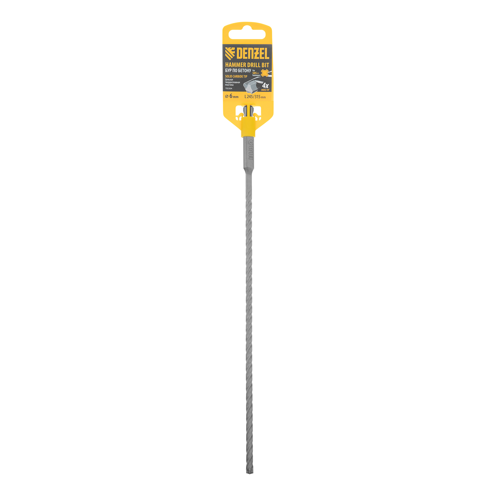 Бур по бетону Denzel 705304 длиной 315 мм, с цельной крестовой пластиной и хвостовиком SDS-plus — оснастка для перфораторов, предназначенная для получения отверстий диаметром 6 мм в бетоне, кирпиче, камне. Благодаря цельному карбидному наконечнику с 4 режущими кромками бур оптимален для работы с материалами высокой твердости, в том числе с армированным бетоном. Оснастка превосходит большинство аналогов по своим рабочим качествам и подходит для профессионального использования.