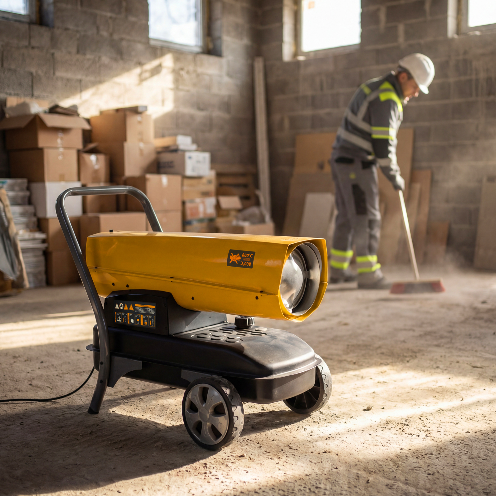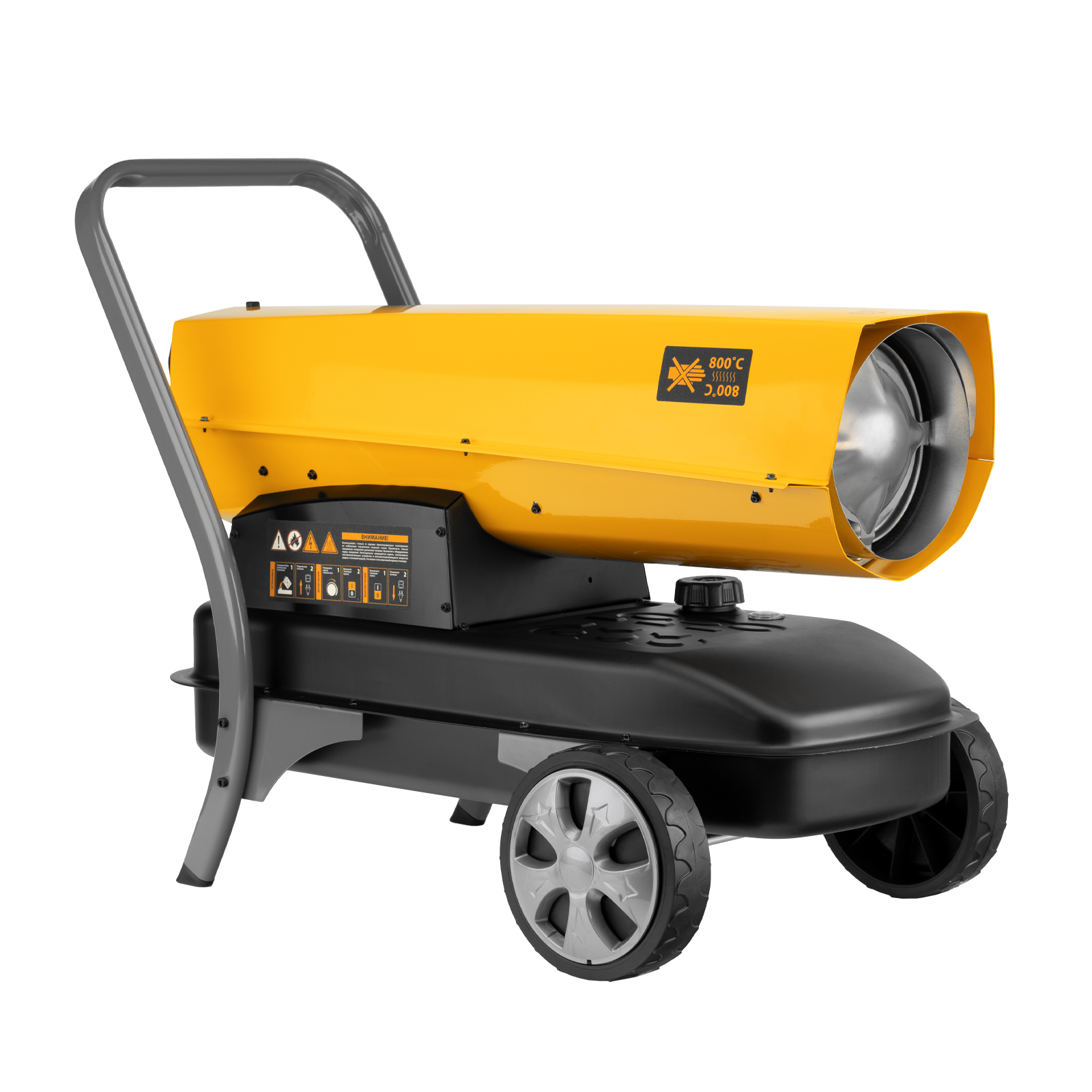 Дизельная тепловая пушка Denzel DHG-45i 96485 номинальной тепловой мощностью 45 кВт и производительностью 1000 куб. м/ч, с прямым типом нагрева, с электронным термостатом, предназначена для обогрева цехов, складов, теплиц и других нежилых помещений. Используется в строительстве и на производстве. Пушка характеризуется низким расходом топлива: полного бака хватает более чем на 9 часов работы. Важно: в обогреваемом помещении необходимо обеспечить хорошую вентиляцию.