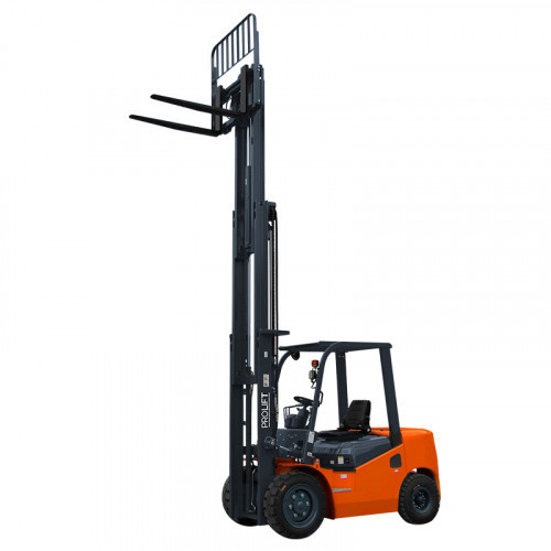 Долговечные износостойкие пневматические шины обеспечивают повышенную проходимость погрузчика, сводят к минимуму риск повреждения хрупких грузов, делают работу более комфортной. Пространство для ног оператора увеличено, что позволяет занять максимально удобное положение. Для быстрой и удобной посадки в кабину на стойке установлена специальная ручка с противоскользящим покрытием. Сиденье удобное, как и рулевая колонка, оно имеет функцию регулировки. Грузоподъемность модели составляет 3000 кг. Максимальная высота, на которую выполняется подъем грузов, равна 3 м.