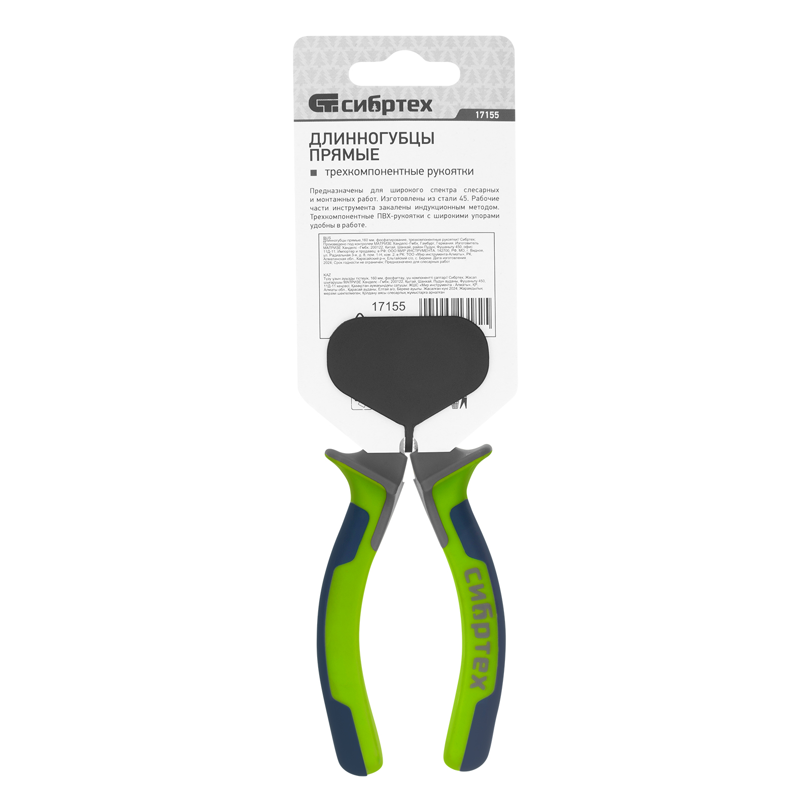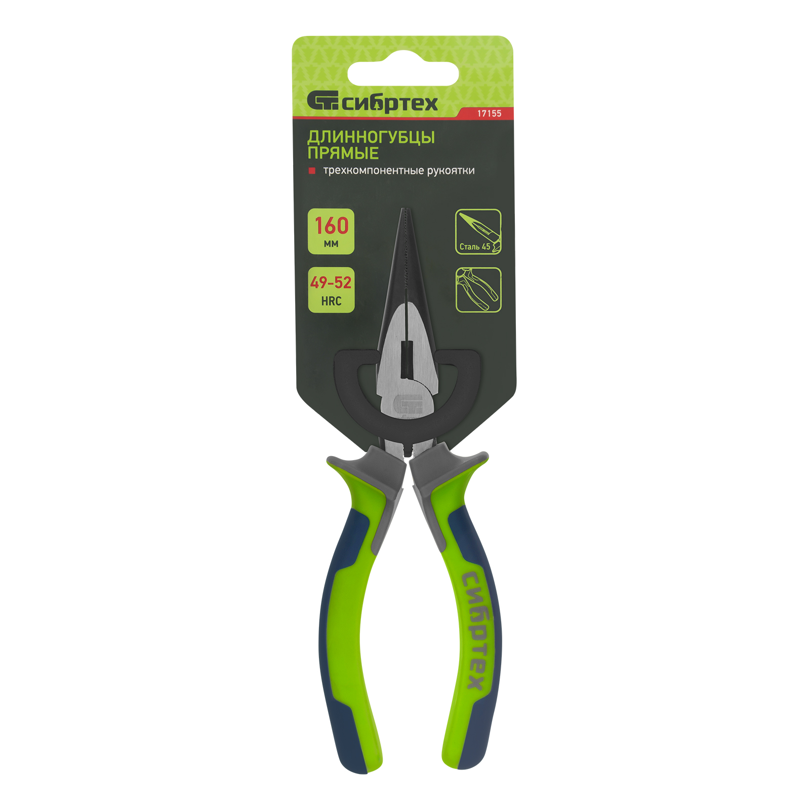 Длинногубцы прямые 160 мм, фосфатирование, трехкомпонентные рукоятки Сибртех в Москве