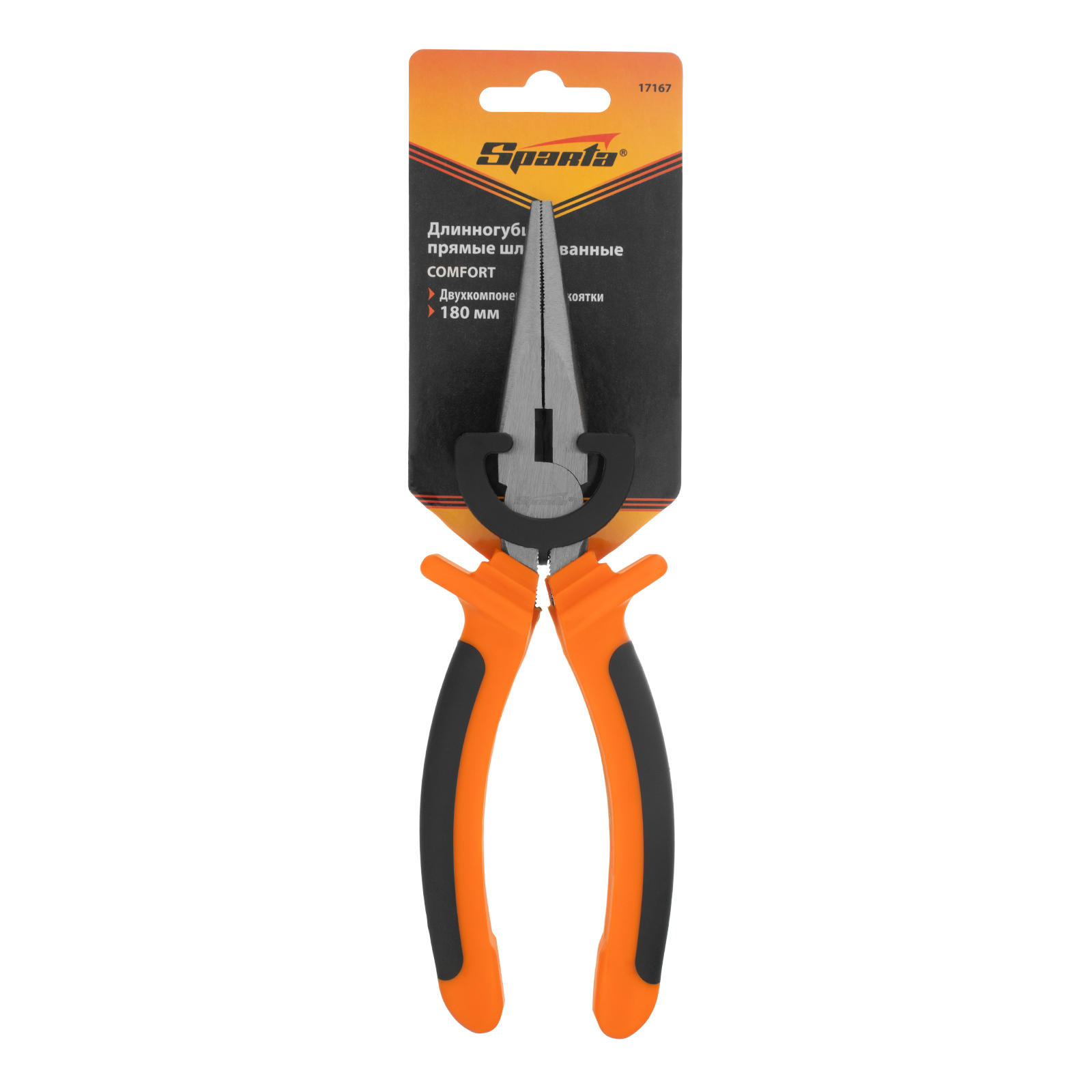 Длинногубцы прямые Comfort, 180 мм, шлифованные, двухкомпонентные рукоятки Sparta в Москве