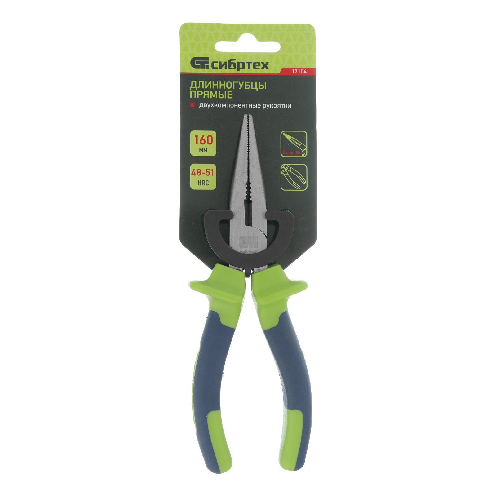 Длинногубцы прямые, 160 мм, двухкомпонентные рукоятки Сибртех в Москве