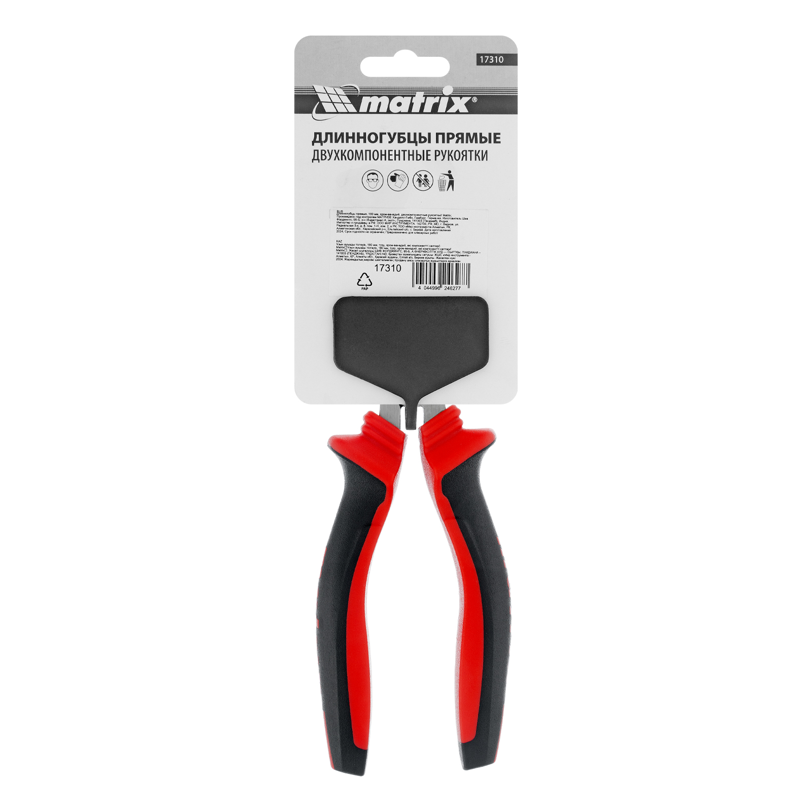 Длинногубцы прямые, 180 мм, хром-ванадий, двухкомпонентные рукоятки Matrix в Москве