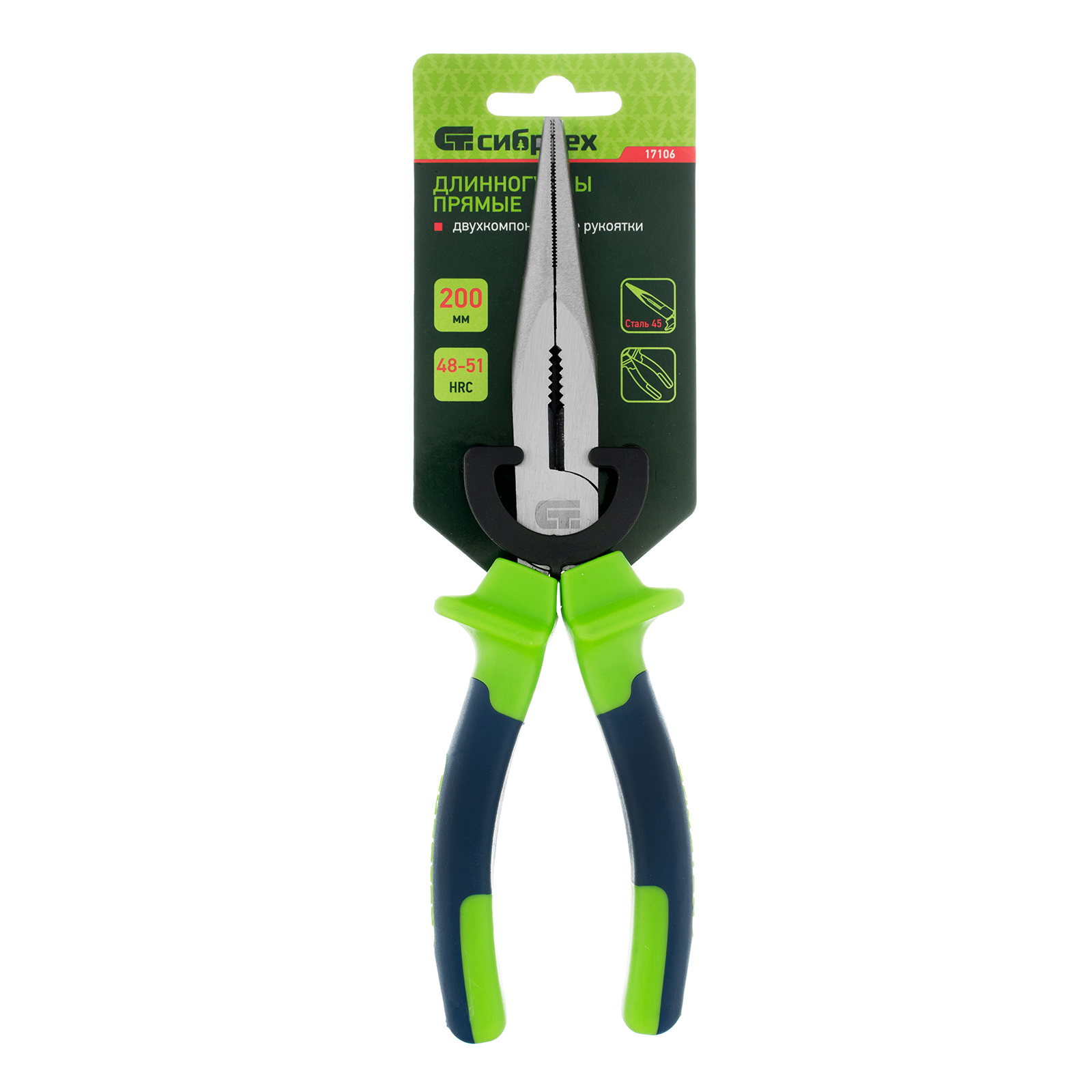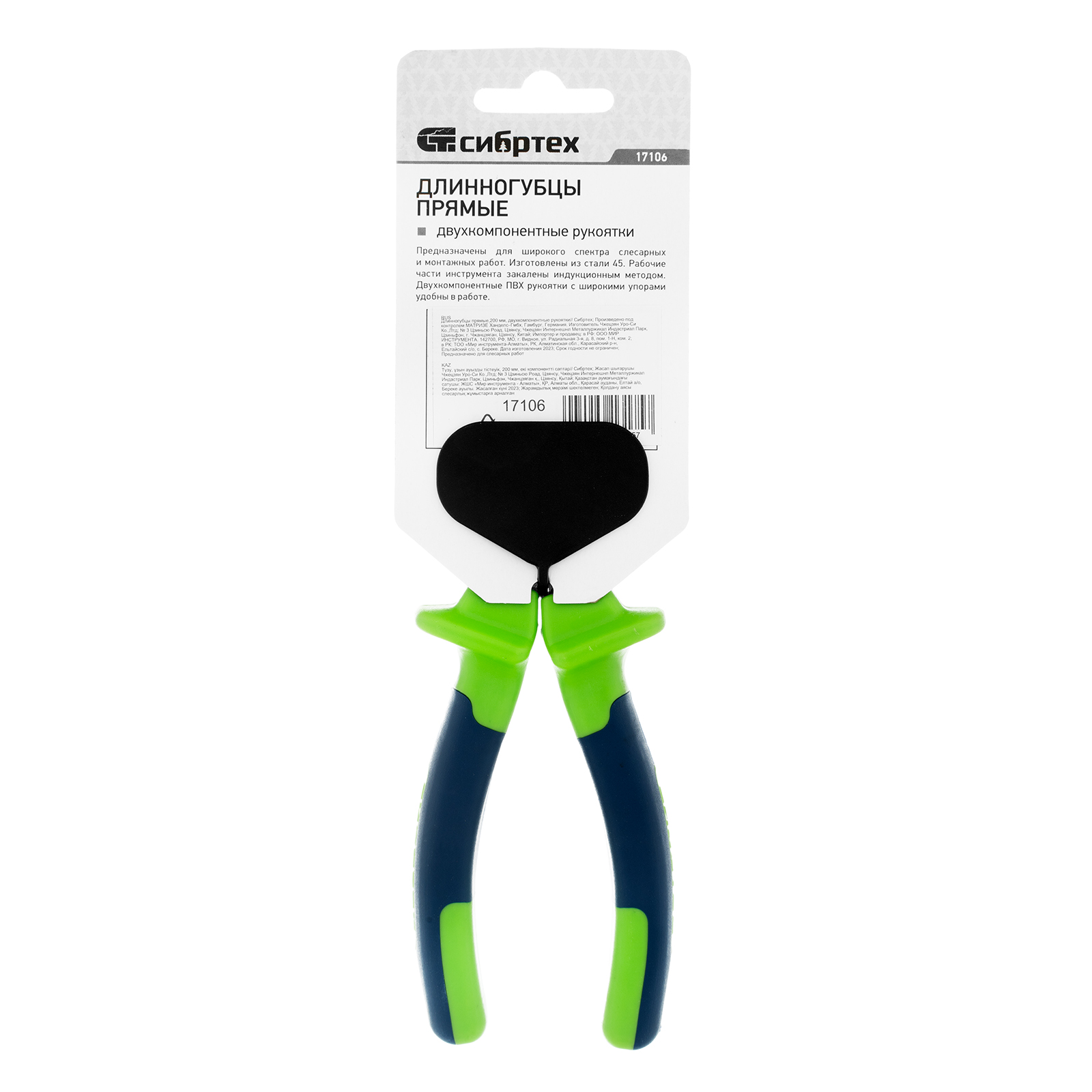 Длинногубцы прямые, 200 мм, двухкомпонентные рукоятки Сибртех в Москве