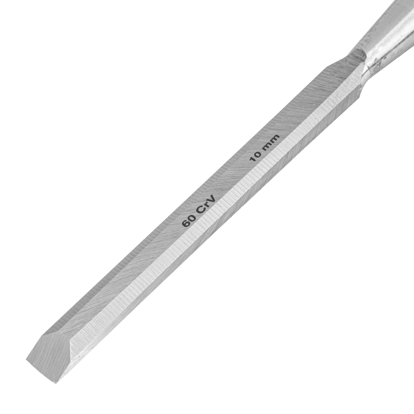 - Длительное сохранение режущих свойств — долото-стамеска обладает твердостью 65 HRC (0,7 длины рабочей части полотна), острое, как бритва, лезвие обработано на заводе под углом 20-35°, повторная заточка потребуется минимум через 6 месяцев.