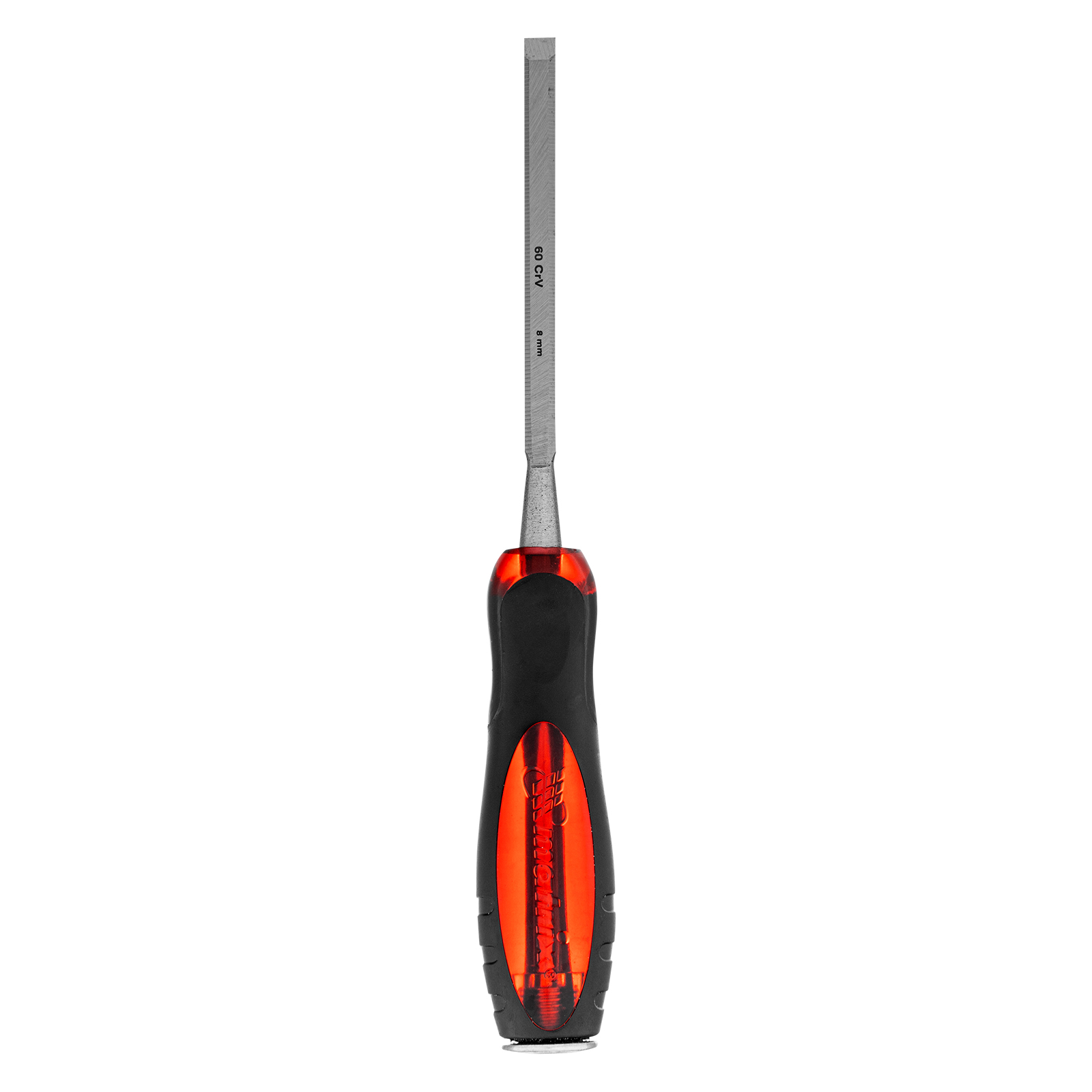 Долото-стамеска Matrix «Тигровый глаз» 24503 с полотном шириной 8 мм и двухкомпонентной обрезиненной рукояткой используется в столярном и плотницком деле, в производстве мебели. Позволяет вырезать углубления, формировать пазы, зачищать шипы и гнезда, снимать фаски. Инструмент выдерживает удары киянкой или молотком, т. к. металлический затыльник защищает его от деформации. Долото относится к профессиональному ручному инструменту, но может применяться и в домашних условиях.