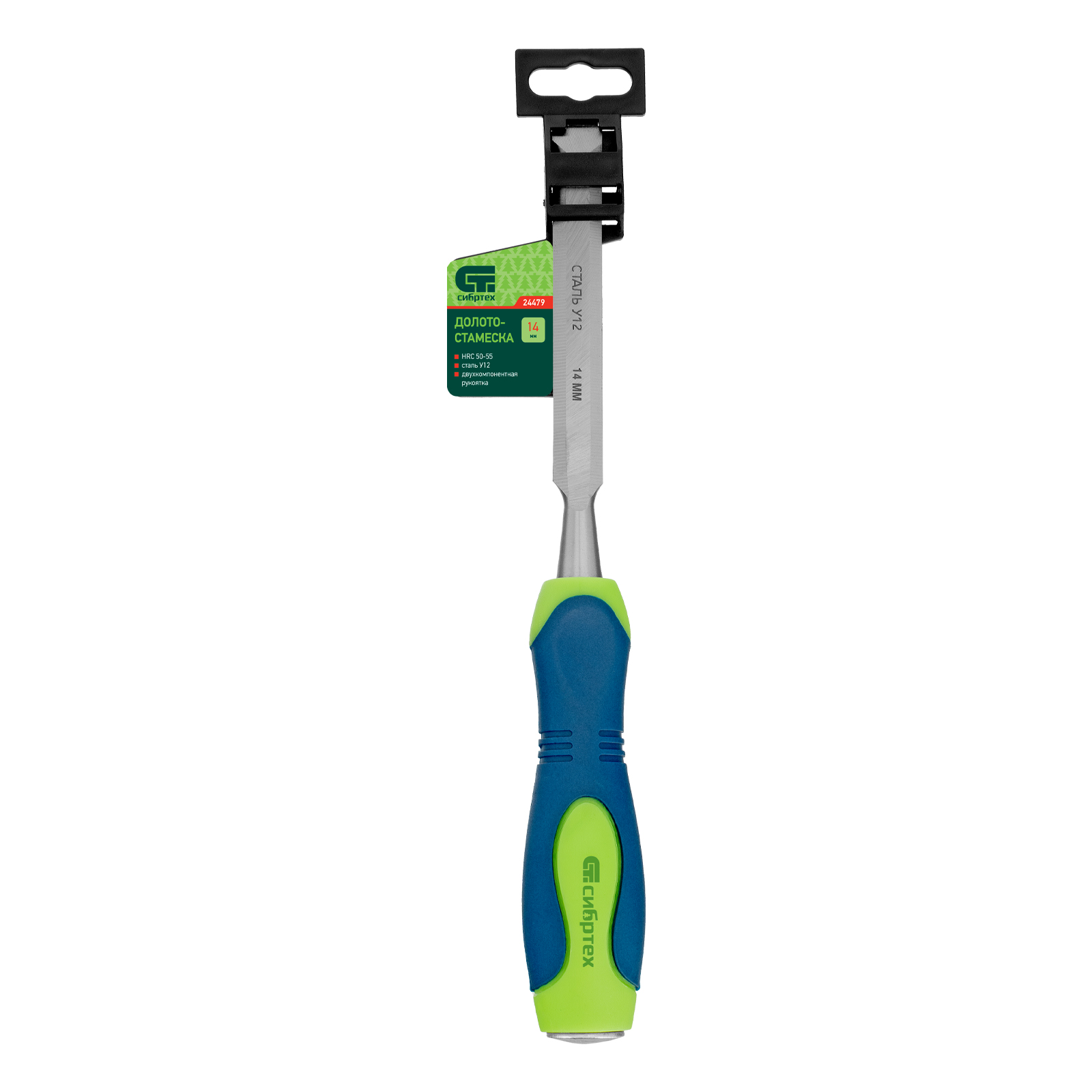 Долото-стамеска Сибртех 24479 с двухкомпонентной рукояткой — ручной инструмент с шириной режущей части 14 мм для столярных и плотницких работ с массивом натурального дерева. Под ударом киянки или небольшого молотка долото-стамеска легко врезается в древесину любых пород, что позволяет получать аккуратные прямоугольные пазы, снимать фаски, зачищать гнезда и т.д.