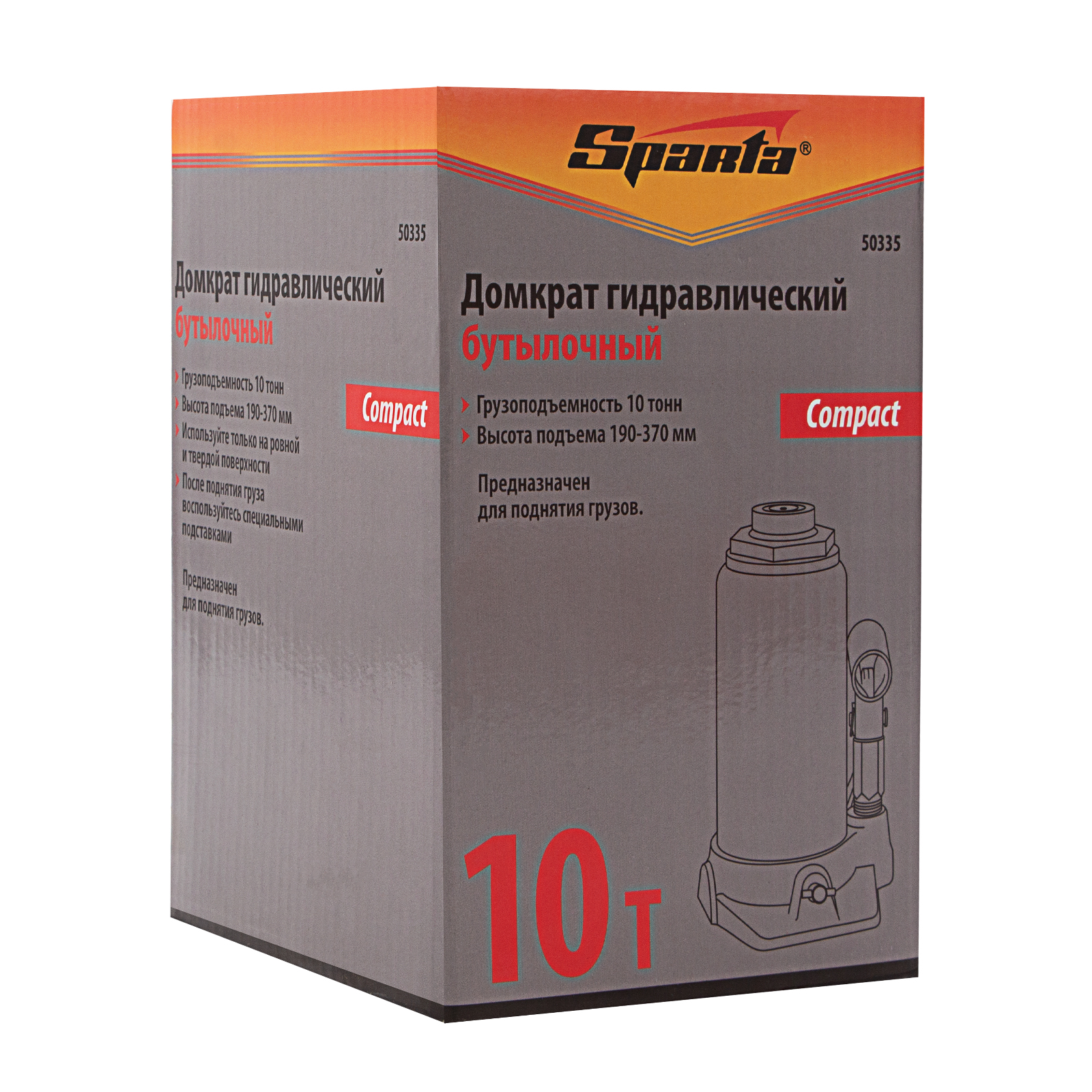 Домкрат гидравлический бутылочный 10 т, h подъема 190-370 мм Sparta Compact в Москве