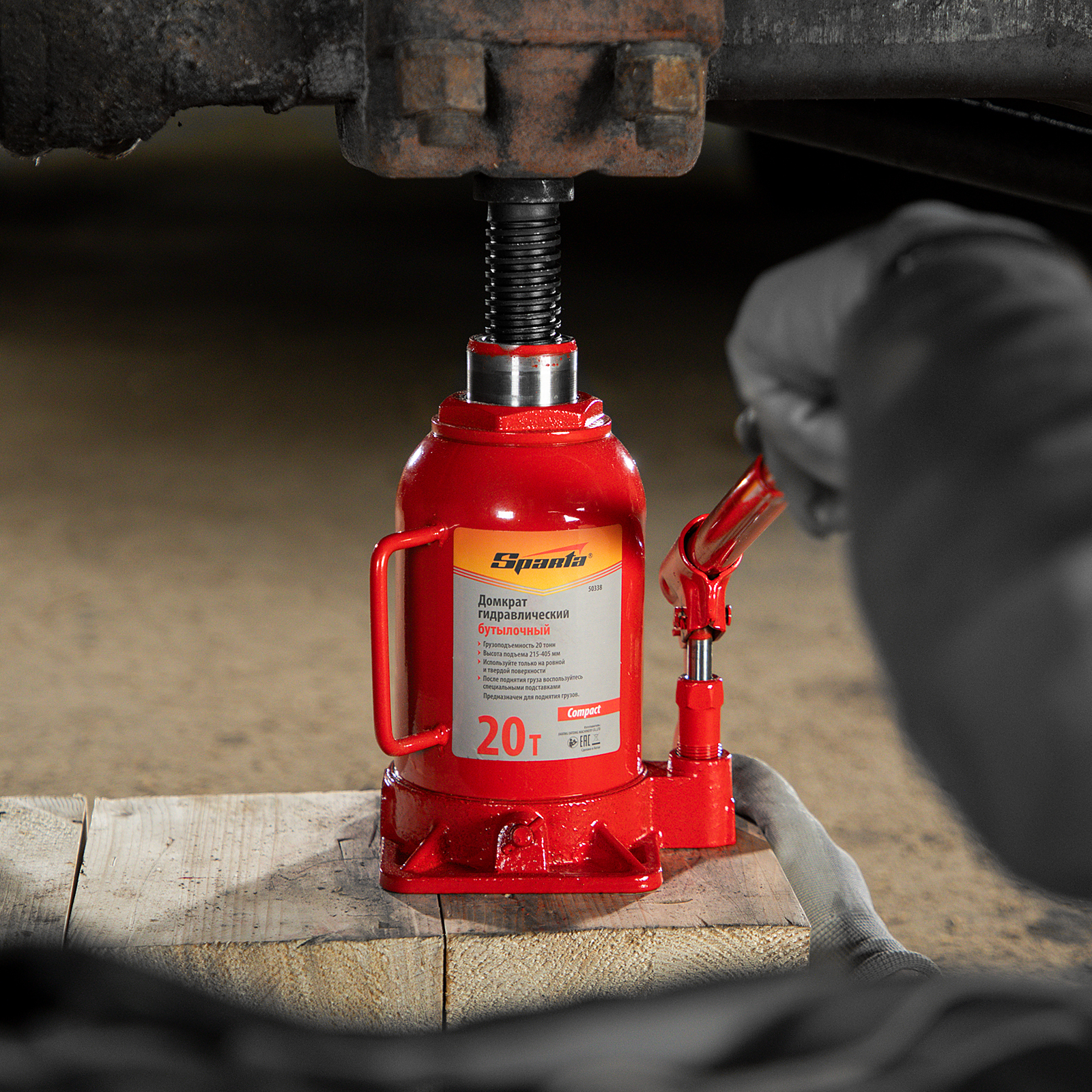 Домкрат гидравлический бутылочный 20 т, h подъема 215-405 мм Sparta Compact в Москве