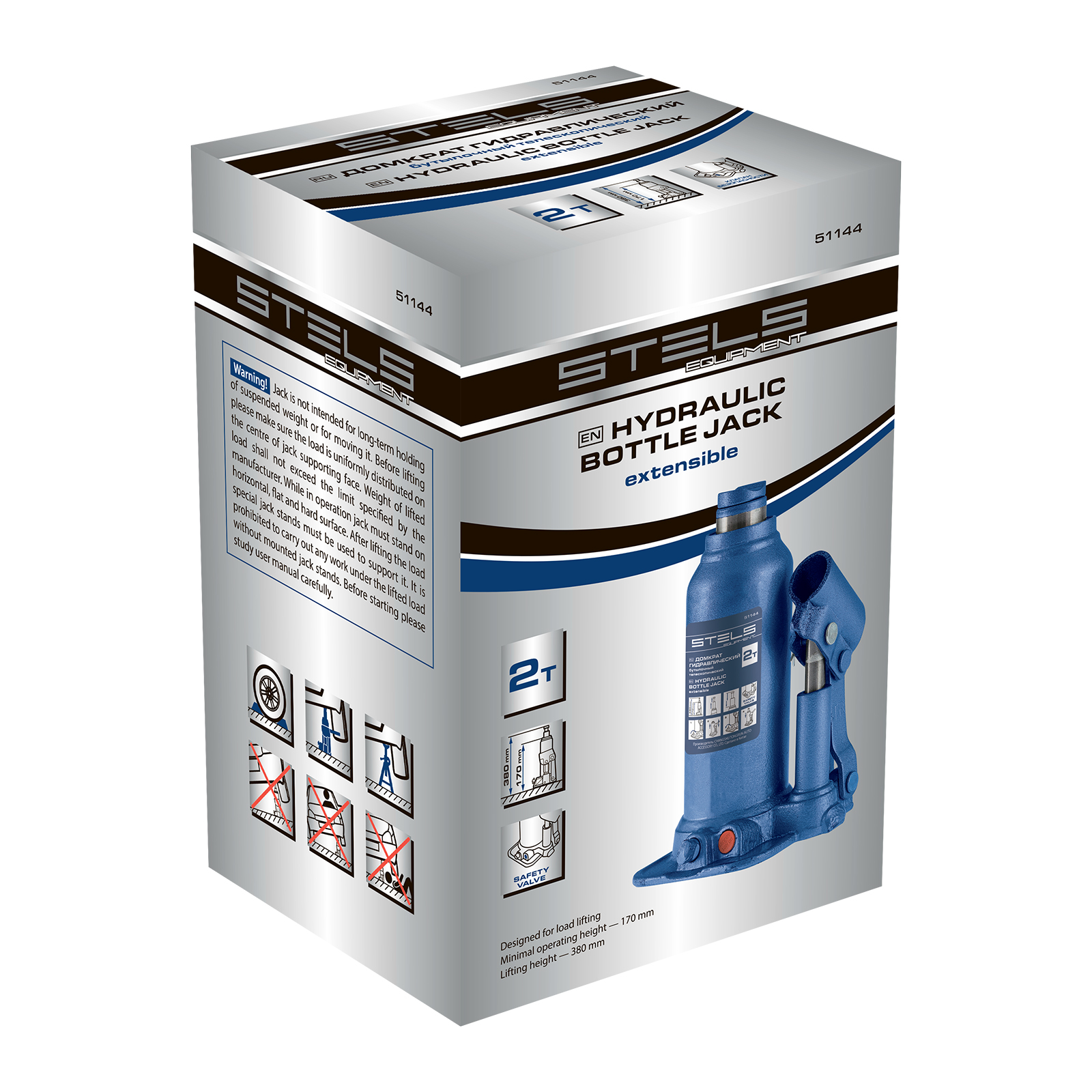 Гидравлический бутылочный телескопический домкрат Stels 51144 используется для поднятия грузов весом до 2 т с на высоту 170-380 мм. Не требует больших усилий и оптимален для автомобилей с большим клиренсом. Домкрат можно использовать в гараже для самостоятельного ремонта машины или в автосервисе для решения профессиональных задач.