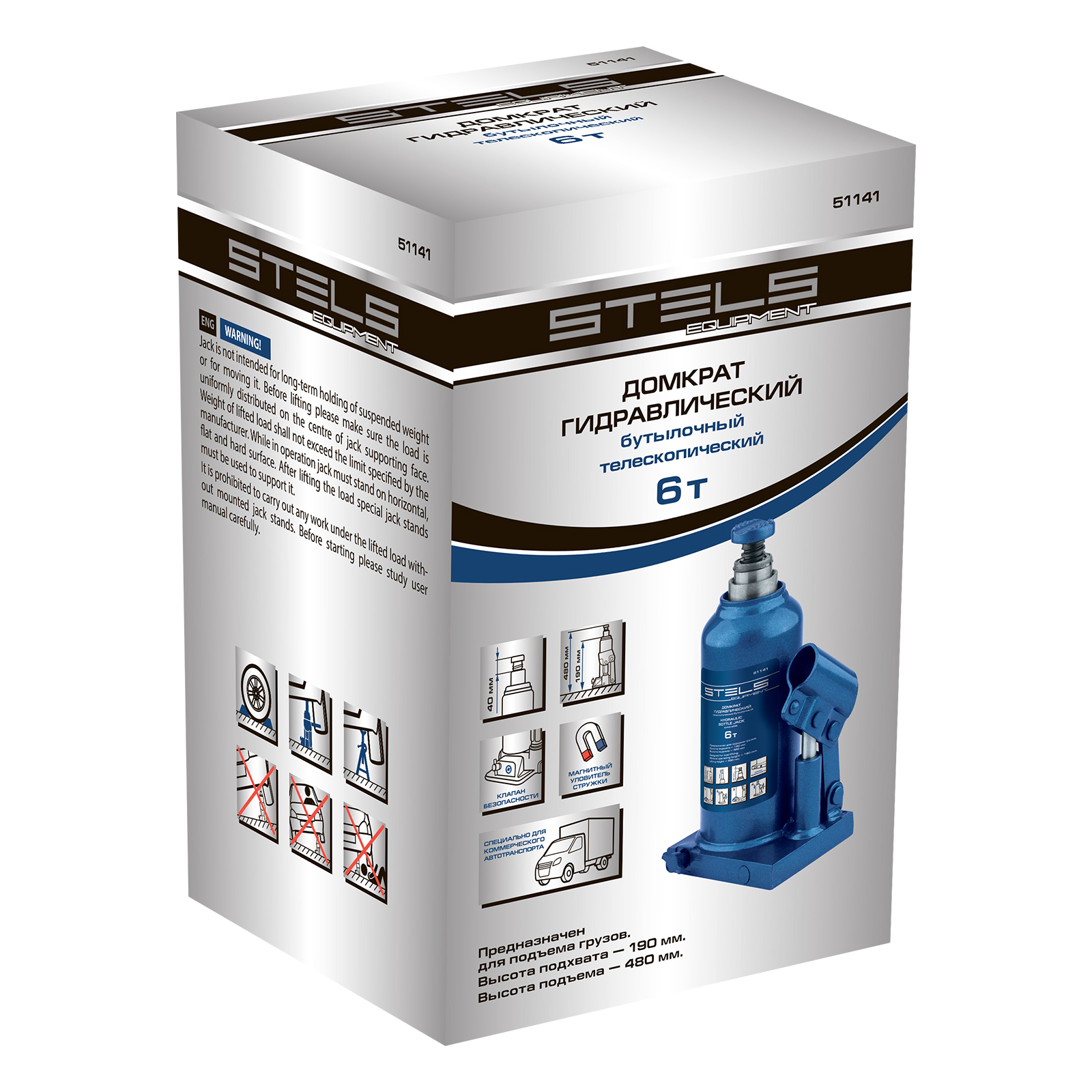 Гидравлический бутылочный телескопический домкрат Stels 51141 используется для поднятия грузов весом до 6 т с на высоту 190-480 мм. Не требует больших усилий и оптимален для автомобилей с большим клиренсом. Домкрат можно использовать в гараже для самостоятельного ремонта машины или в автосервисе для решения профессиональных задач.