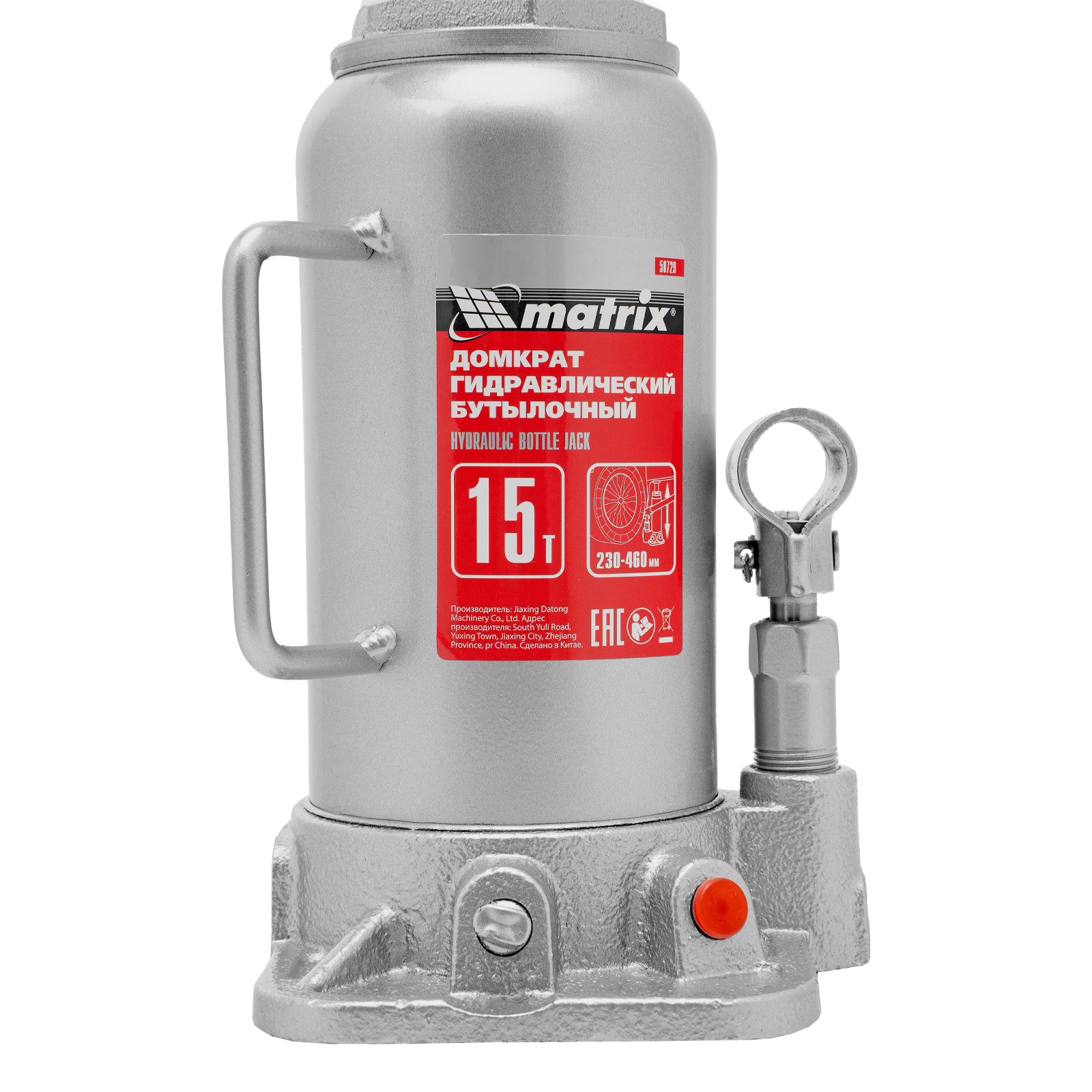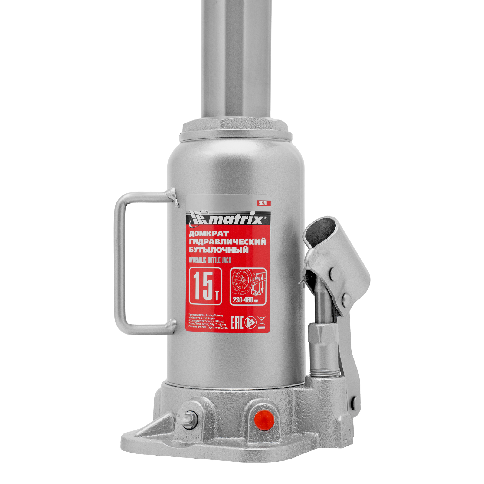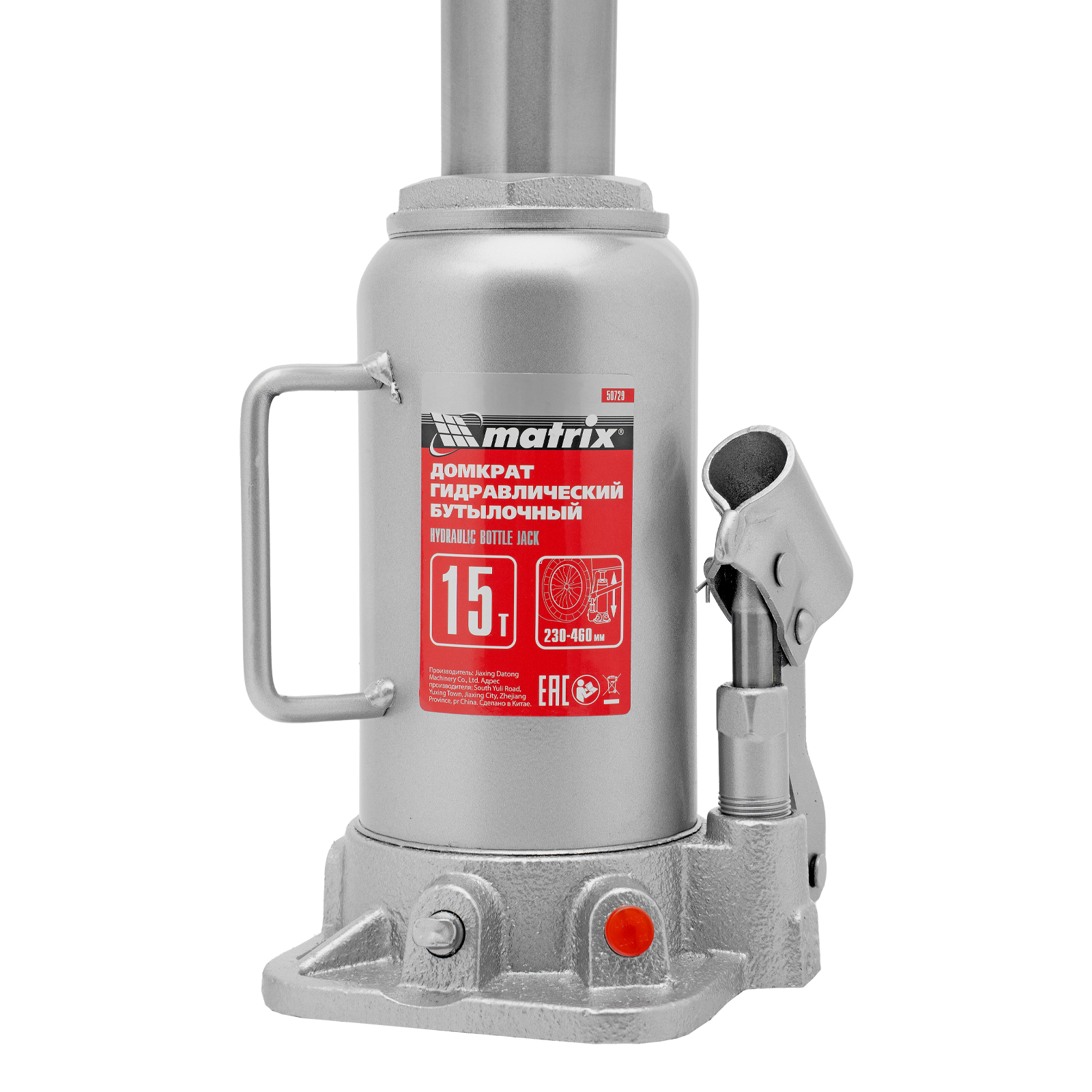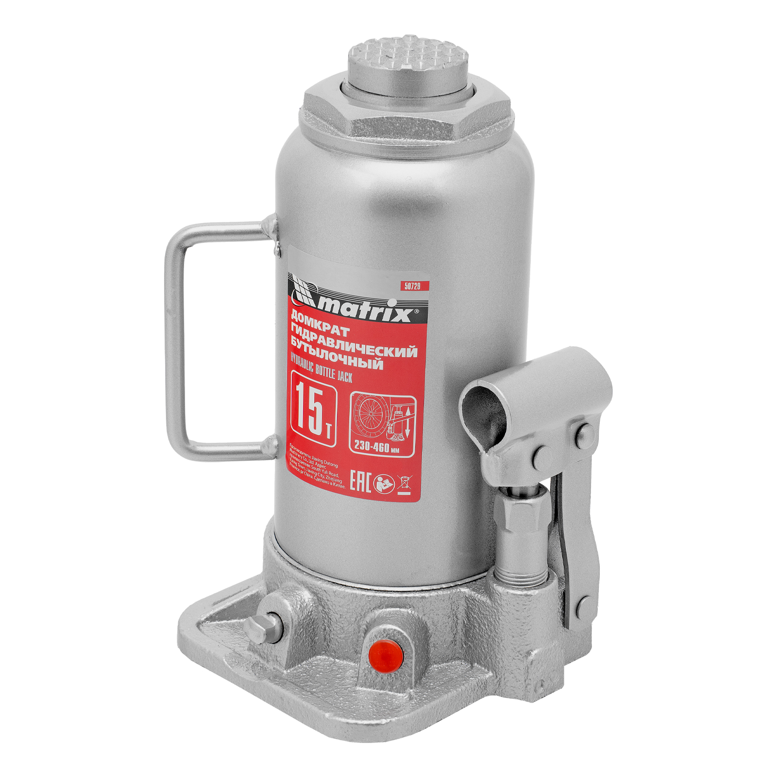 Домкрат гидравлический бутылочный, 15 т, высота подъема 230-460 мм Matrix в Москве