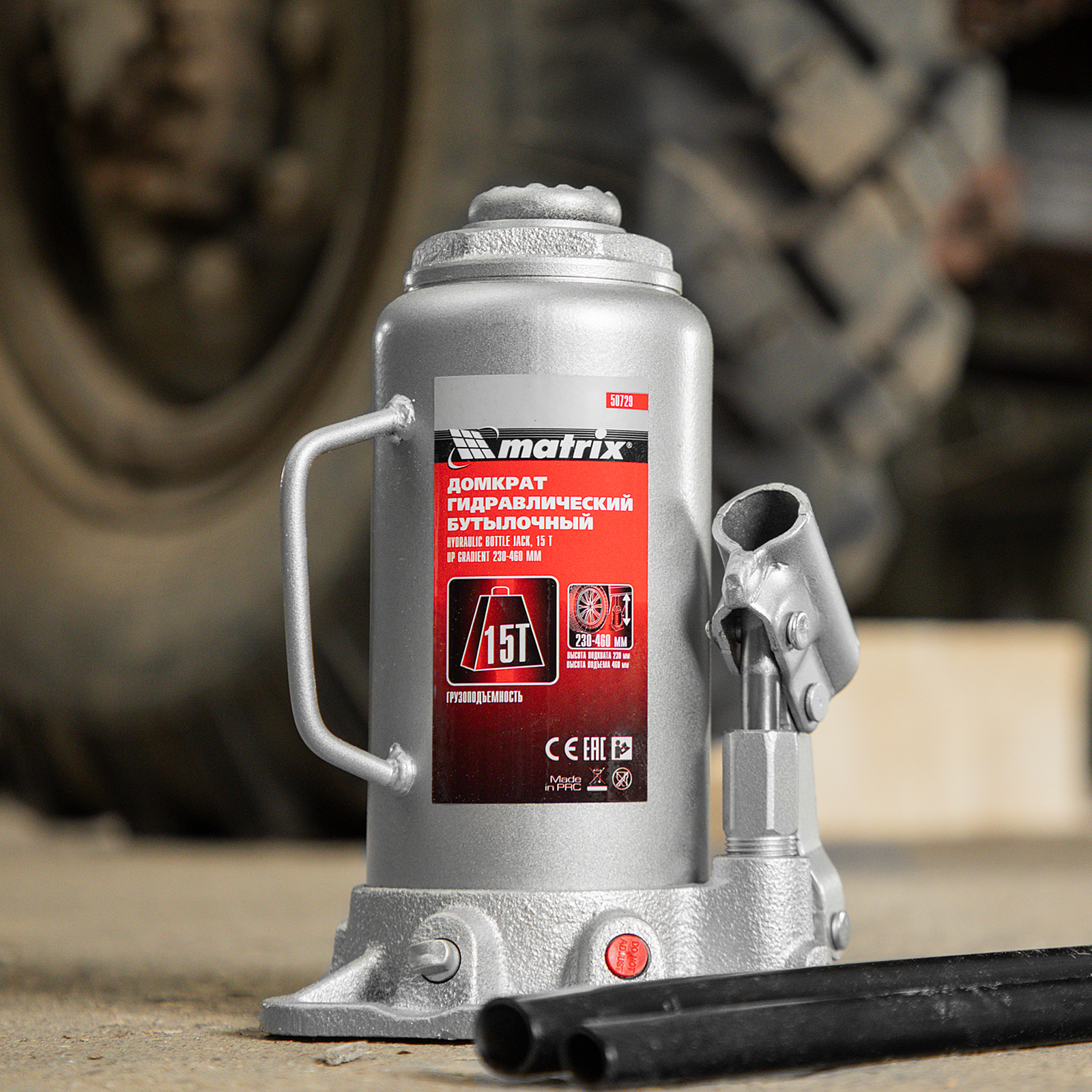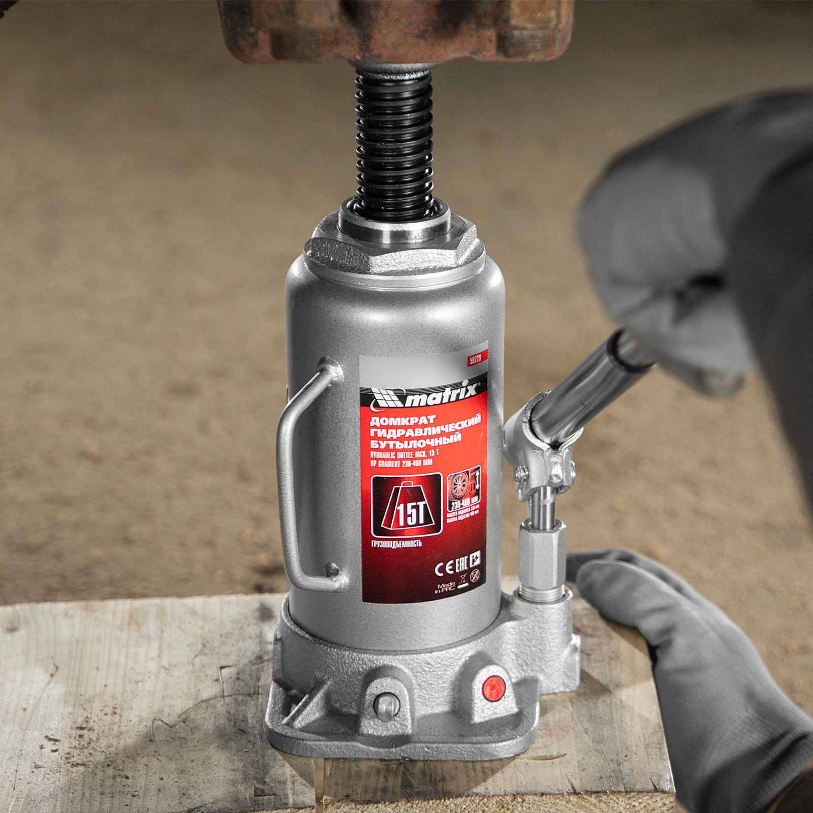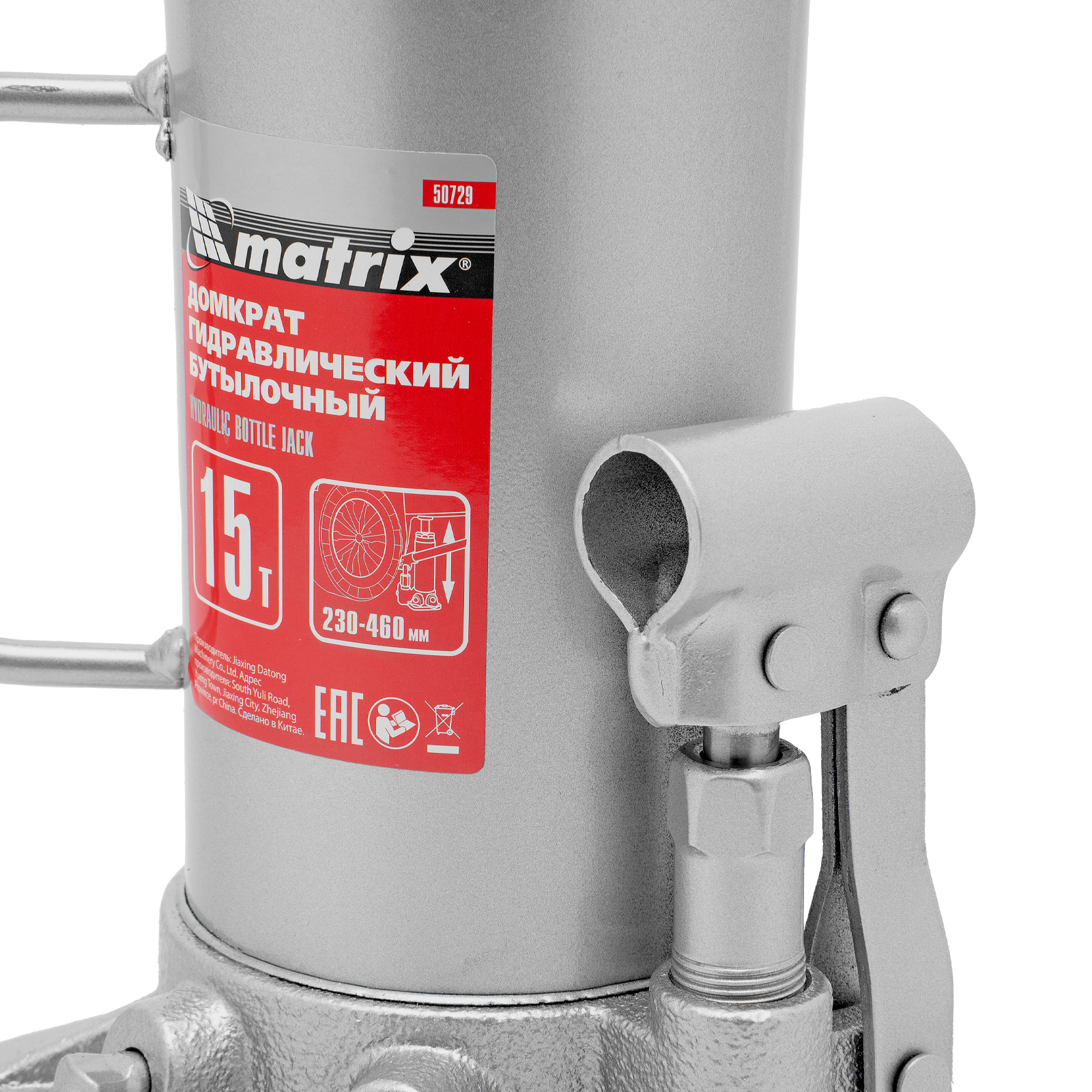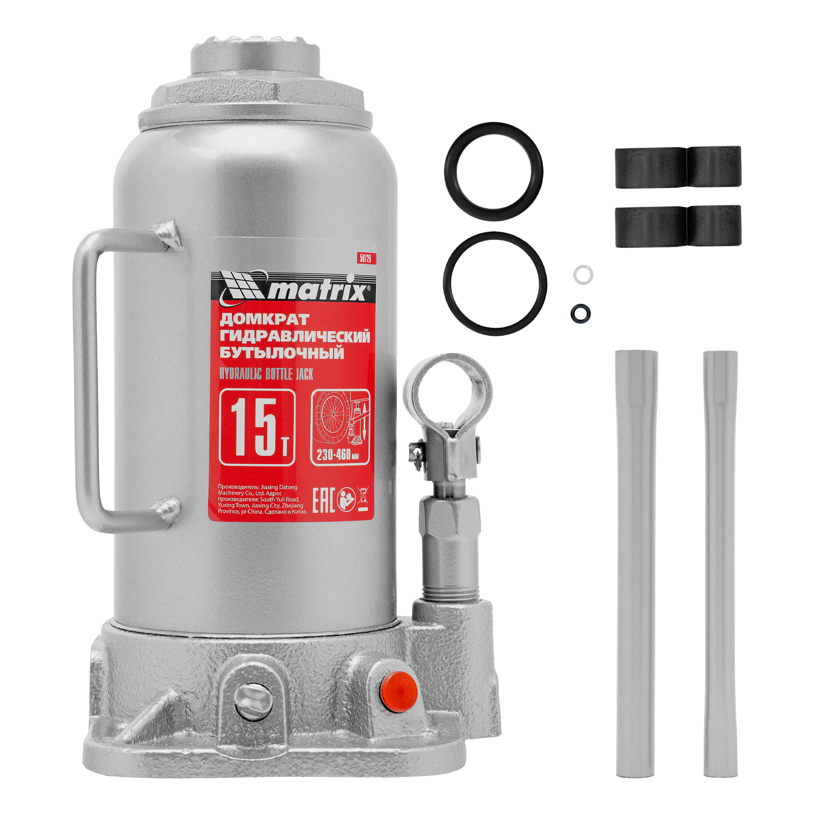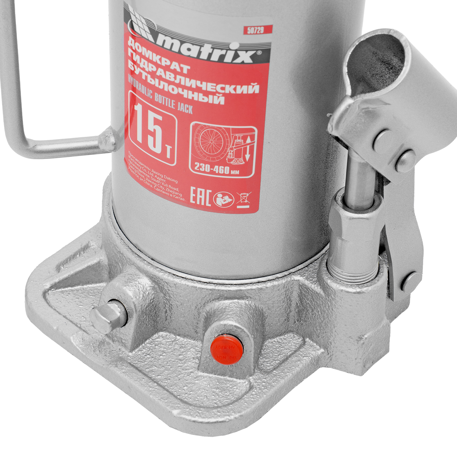 Домкрат гидравлический бутылочный, 15 т, высота подъема 230-460 мм Matrix в Москве