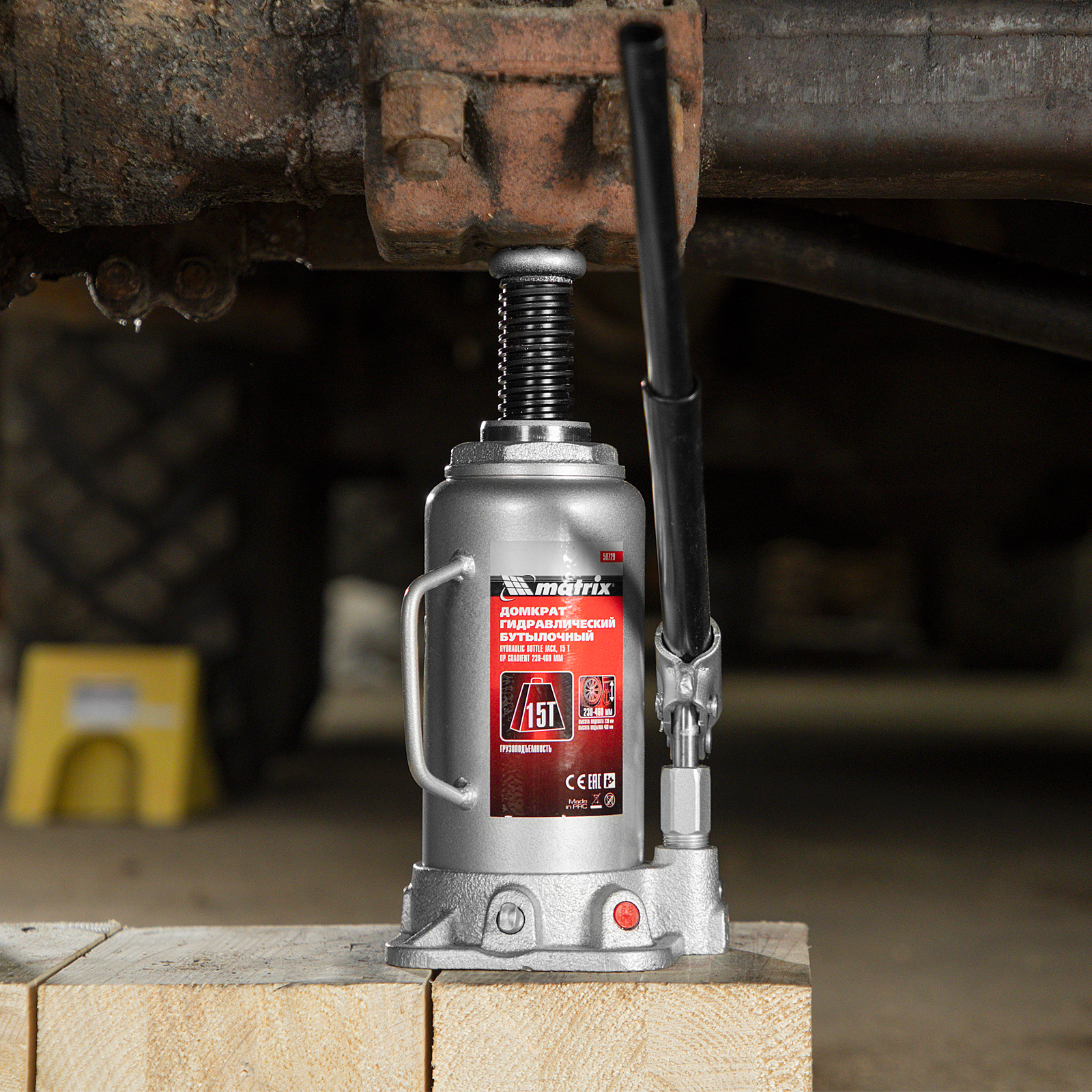 Домкрат гидравлический бутылочный Matrix 50729 используется для поднятия грузов массой до 15 т на высоту 230-460 мм. Подходит для автомобилей с высоким клиренсом. Домкрат будет полезен автолюбителям в гараже и дороге, а также сотрудникам СТО.