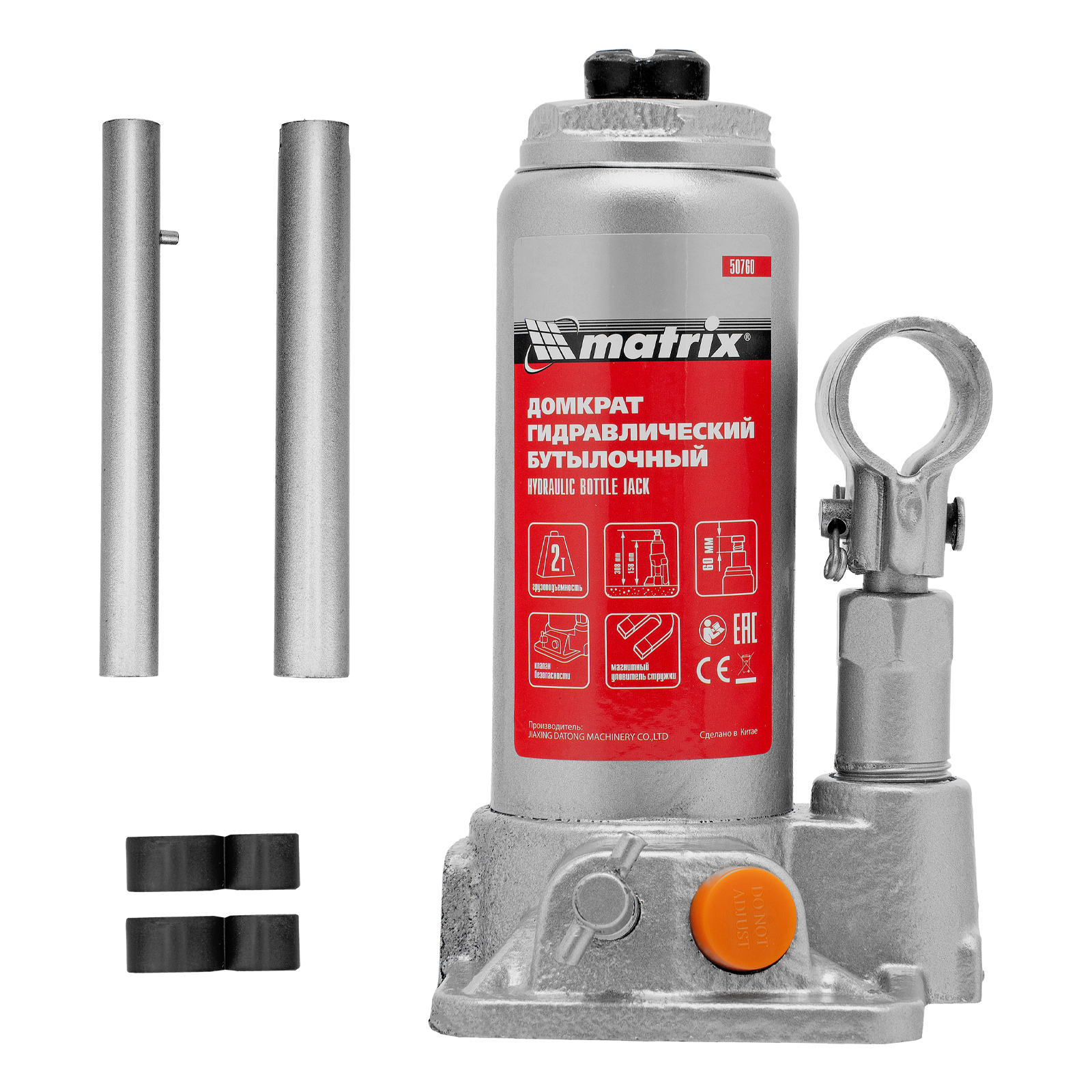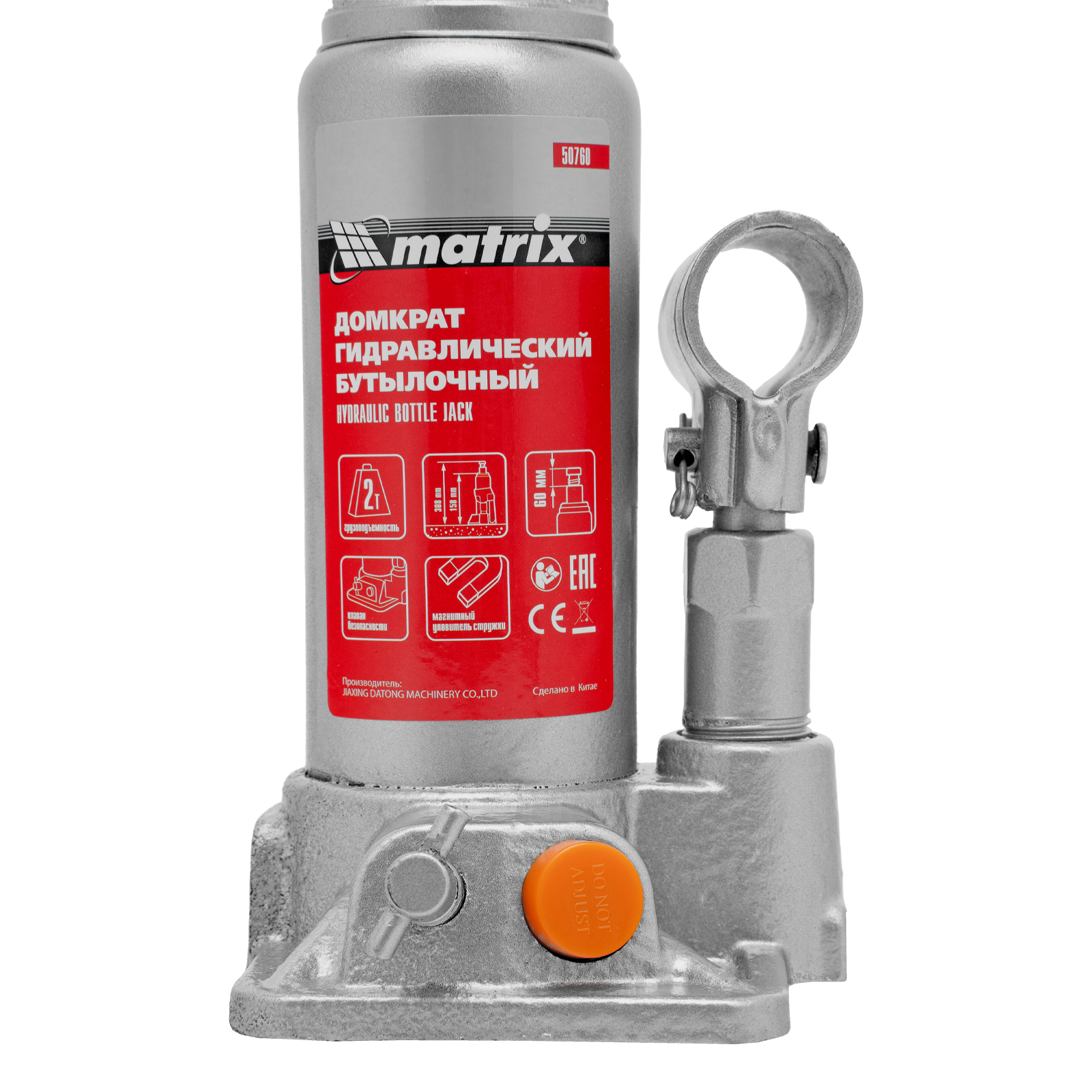 Домкрат гидравлический бутылочный, 2 т, h подъема 158-308 мм Matrix в Москве