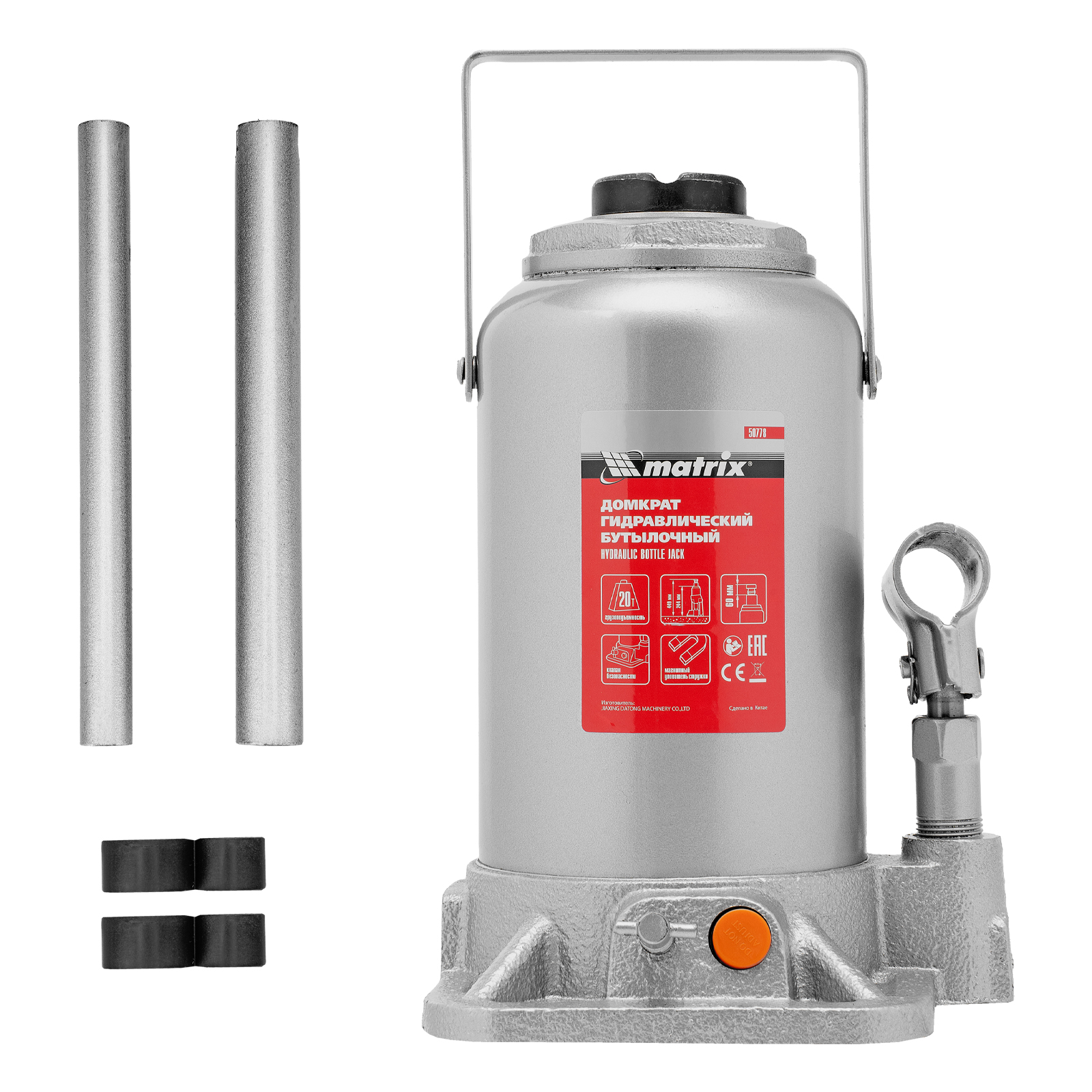 Домкрат гидравлический бутылочный, 20 т, h подъема 244-449 мм Matrix в Москве