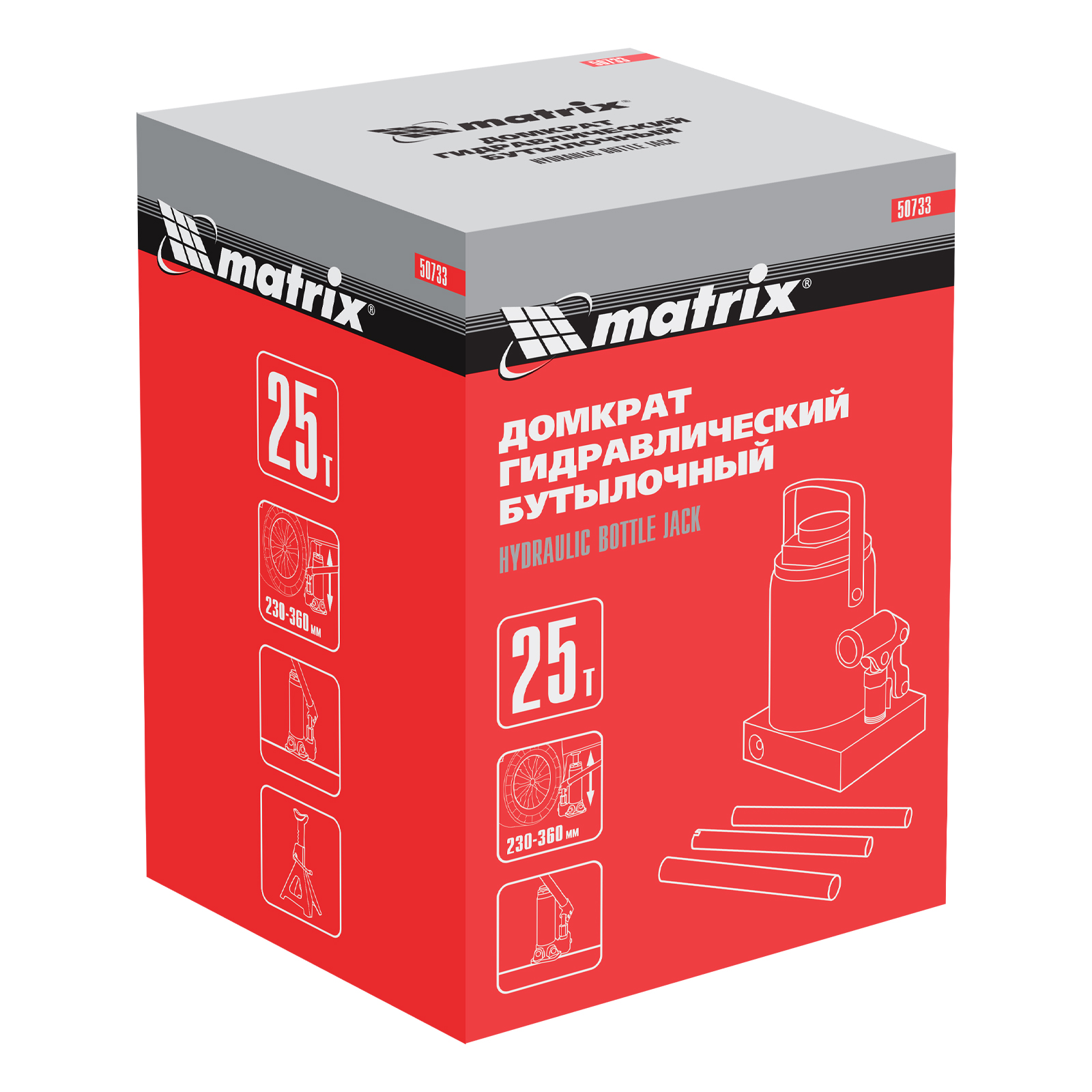 Домкрат гидравлический бутылочный, 25 т, высота подъема 230-360 мм Matrix в Москве