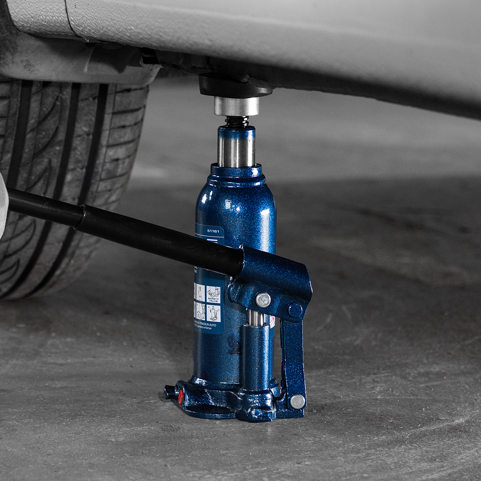 - Безопасная эксплуатация — благодаря предохранительному клапану домкрат не поднимает грузы тяжелее 3000 кг.