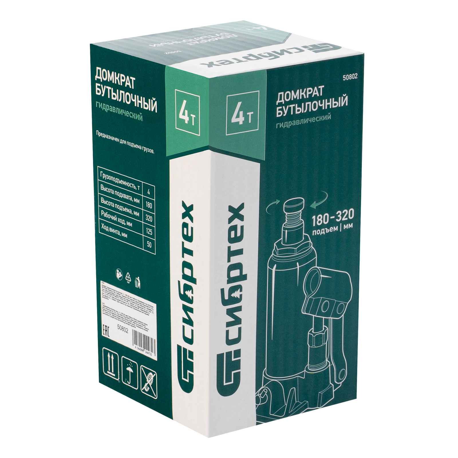 Домкрат гидравлический бутылочный, 10 т, 190-370 мм Сибртех в Москве