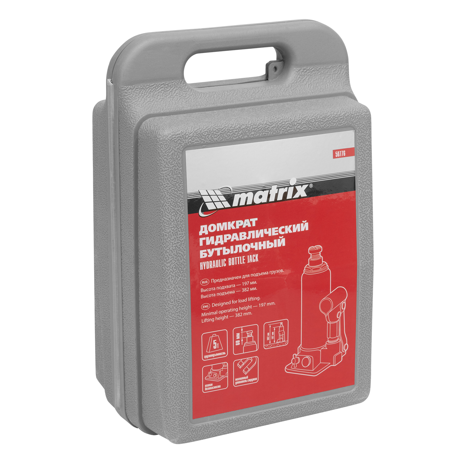 Домкрат гидравлический бутылочный, 5 т, h подъема 197-382 мм, в пластиковом кейсе Matrix в Москве