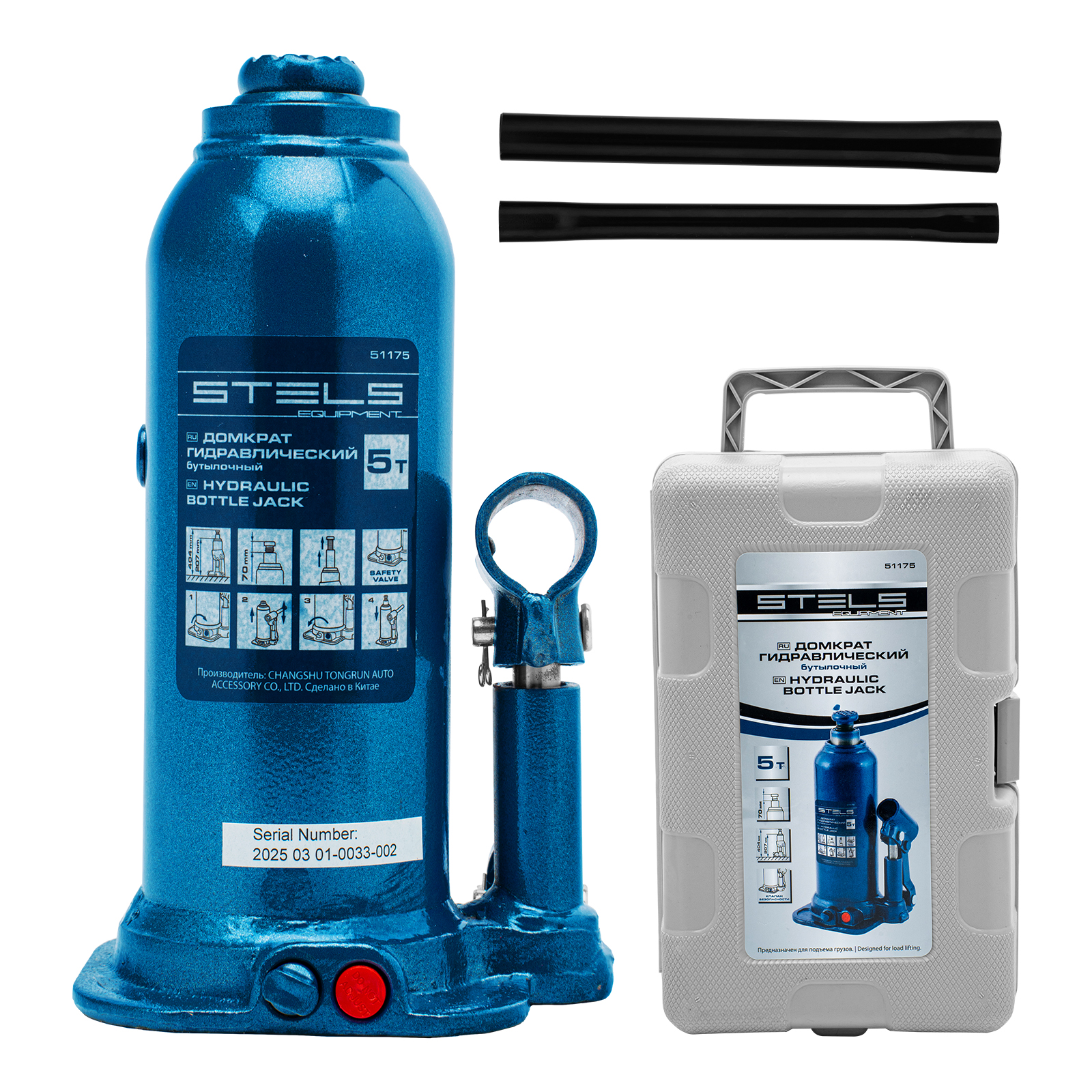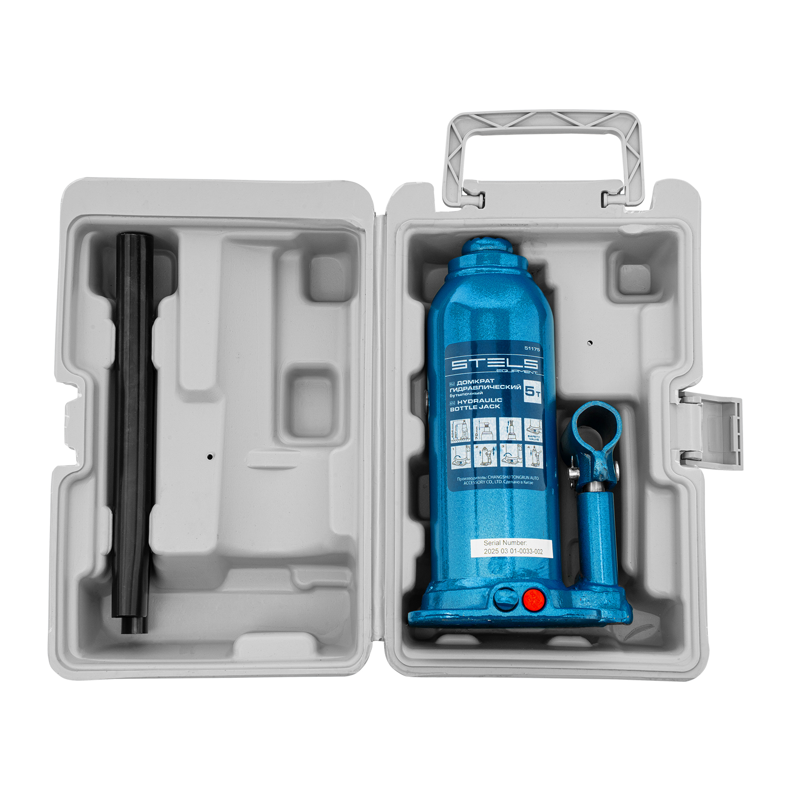 Гидравлический бутылочный домкрат Stels 51175 в пластиковом кейсе предназначен для поднятия грузов весом до 5 т на высоту 207-404 мм. Он не занимает много места и легко помещается в багажник, поэтому его можно брать с собой в дорогу или хранить в гараже. Используется для самостоятельного ремонта авто, также подходит для профессионального применения на станциях технического обслуживания.