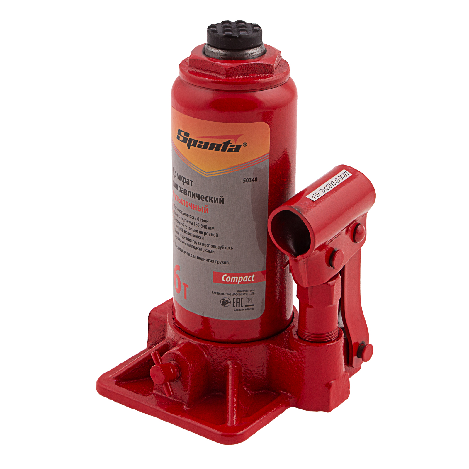 Домкрат гидравлический бутылочный, 6 т, h подъема 180–340 мм Sparta Compact в Москве