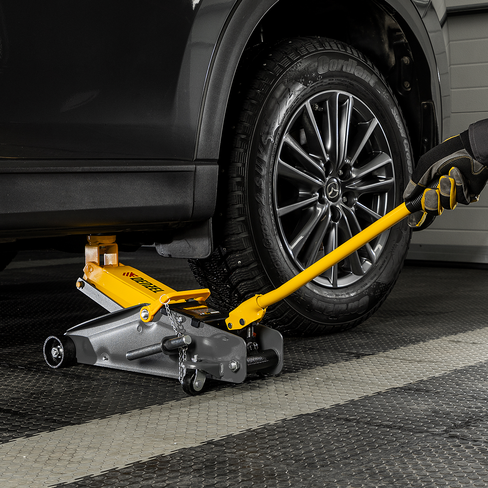 - Эргономичность — домкрат имеет переставную рукоятку для комфортного перемещения и извлечения из-под автомобиля.
