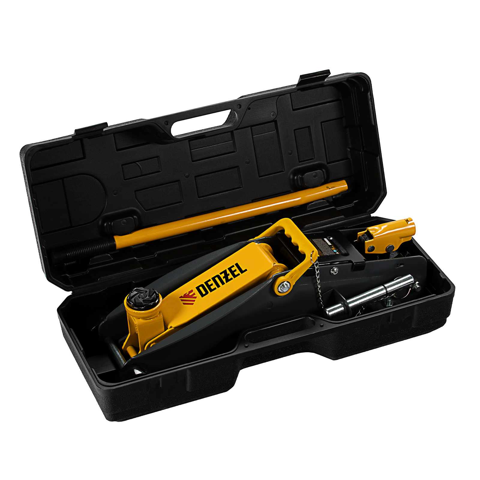 Домкрат гидравлический подкатной с фиксатором, 2,8 т, 135-385 мм, в кейсе Denzel в Москве