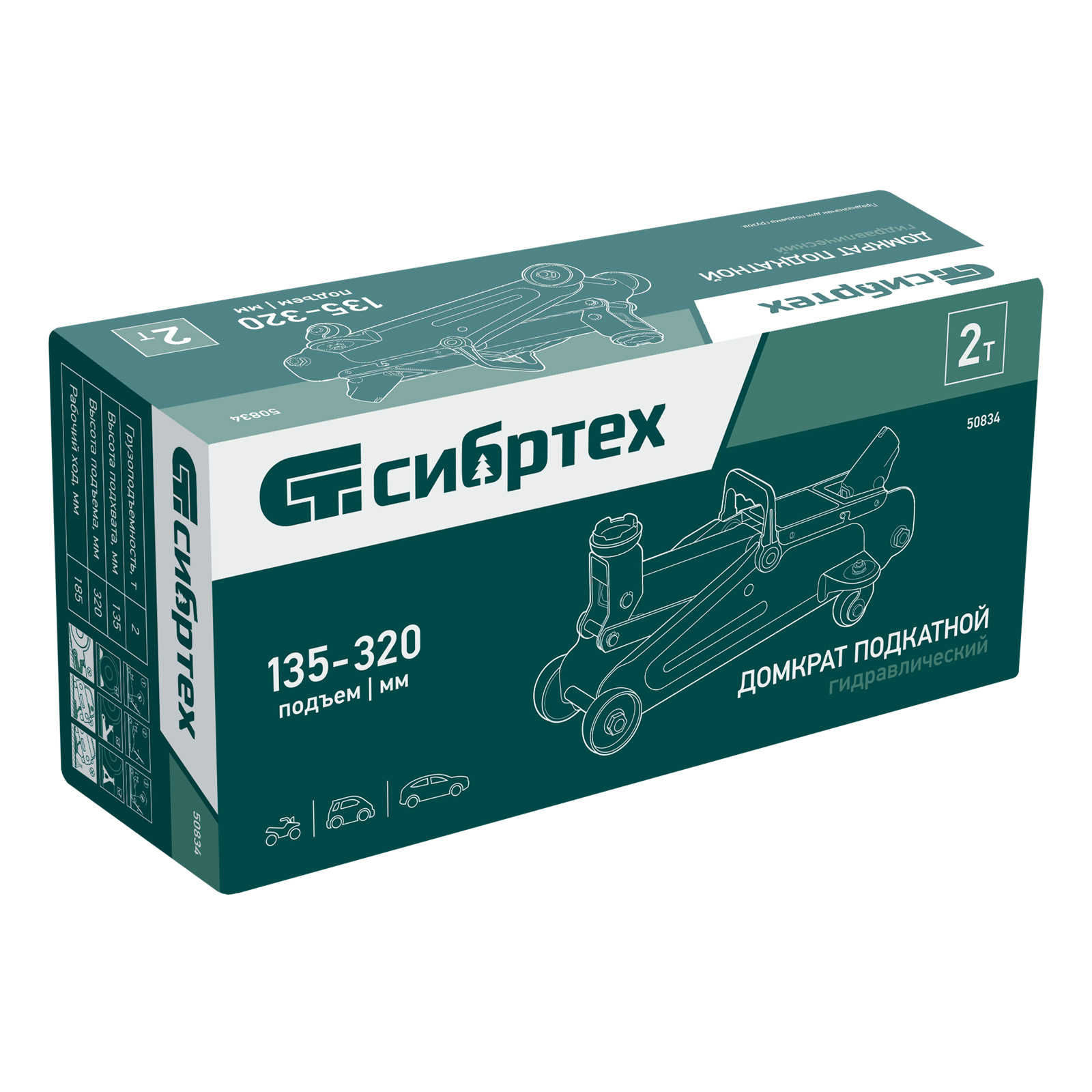 Гидравлический подкатной домкрат Сибртех 50834 с высотой подхвата 135 мм предназначен для подъема грузов массой до 2 т на высоту до 320 мм. Применяется для обслуживания автомобилей со стандартным клиренсом. Компактный домкрат подходит для самостоятельного использования автовладельцами.