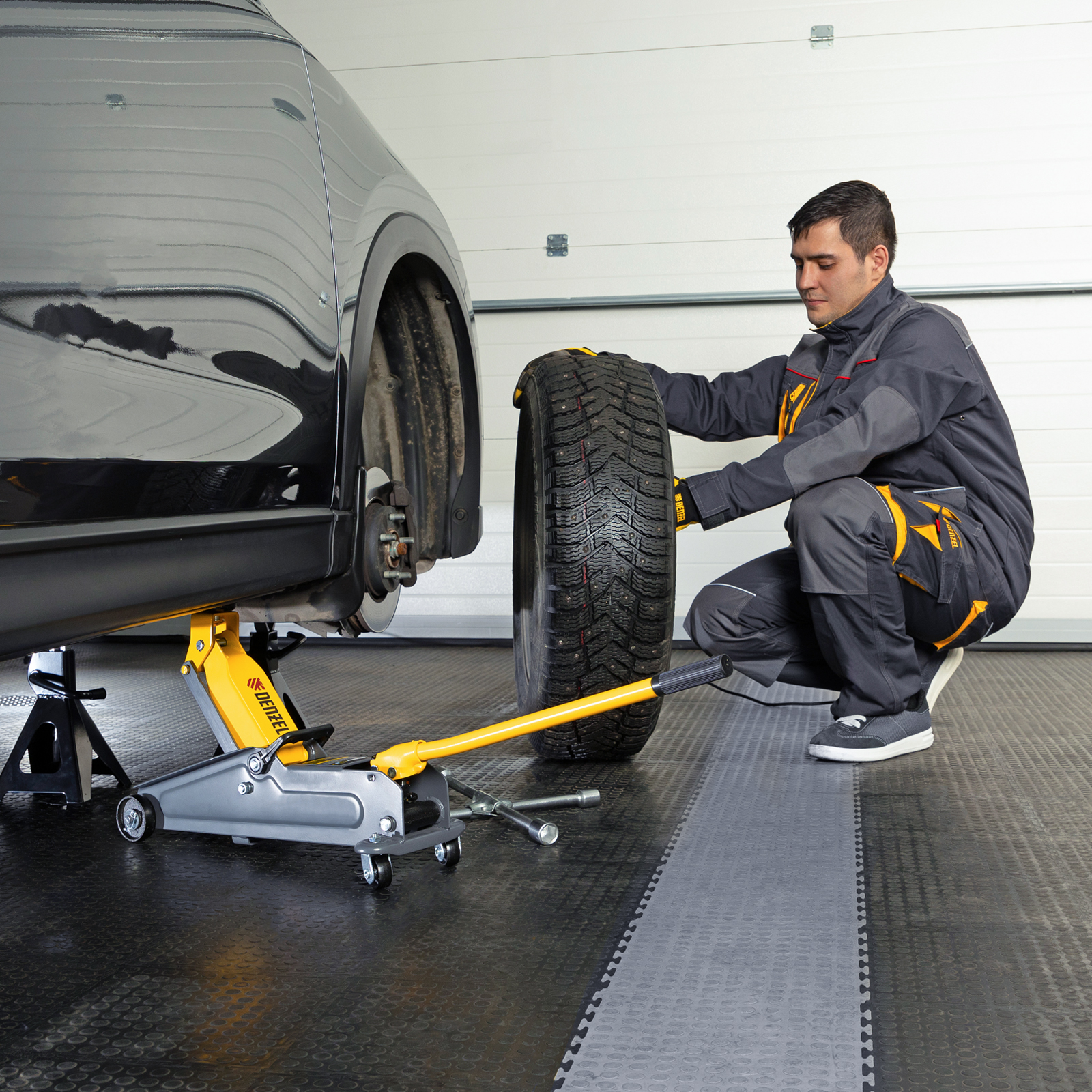 - Аккуратная работа — резиновая опора защищает днище автомобиля от нежелательных повреждений.
