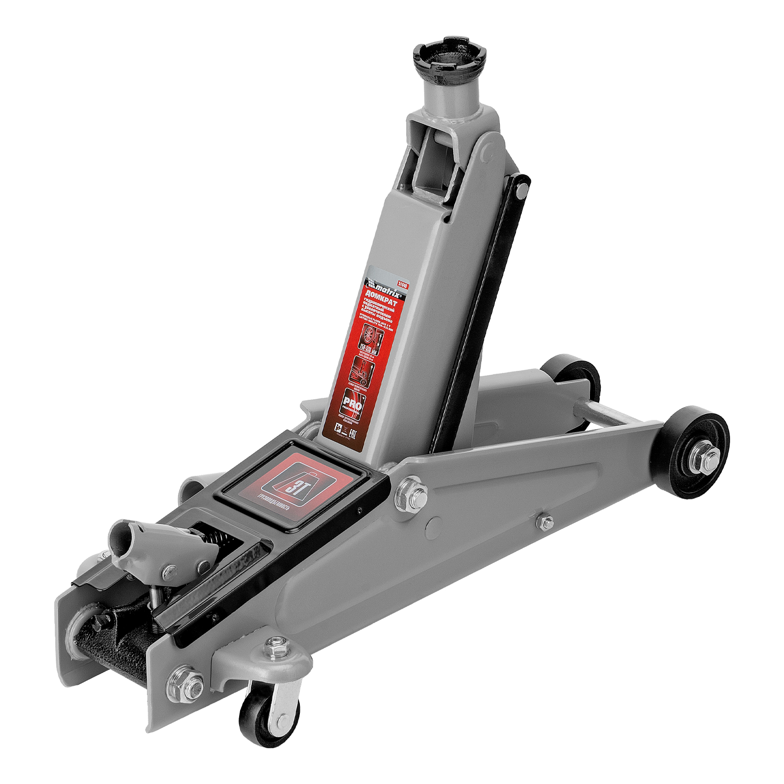 Домкрат гидравлический подкатной, 3 т, высота подъема 150-530 мм Matrix в Москве