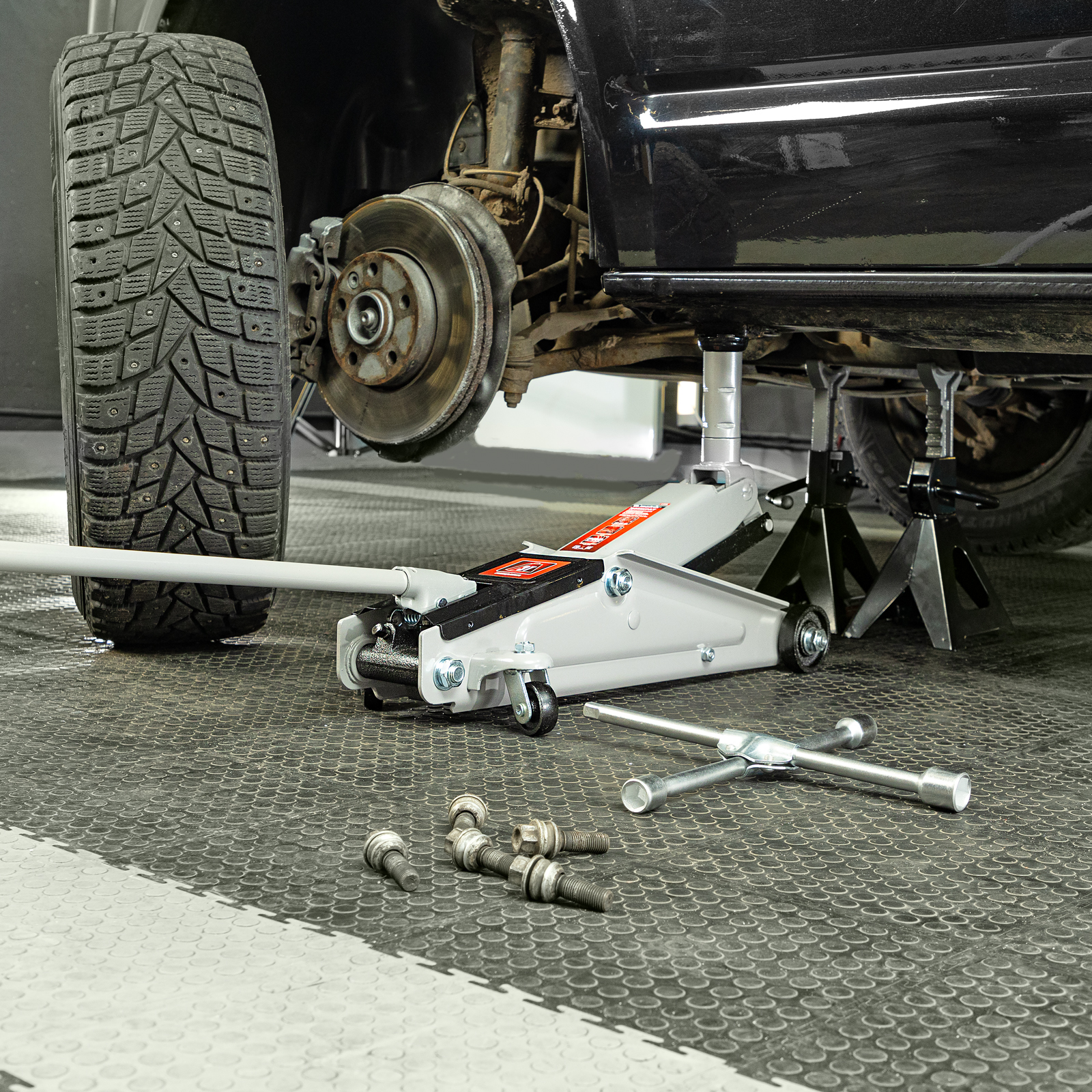 - Компактность — домкрат размером 625 х 242 х 158 мм легко помещается в багажник автомобиля.