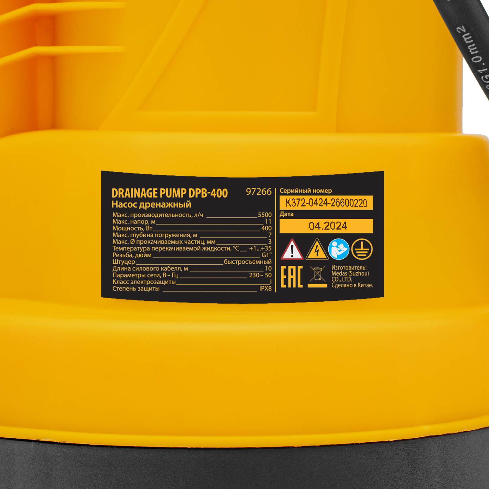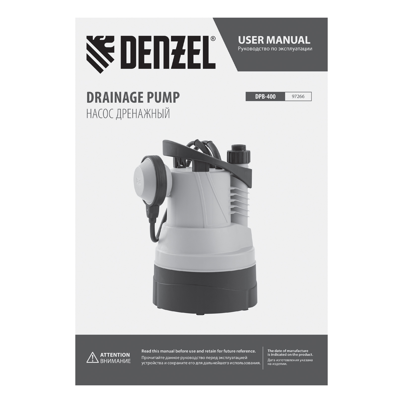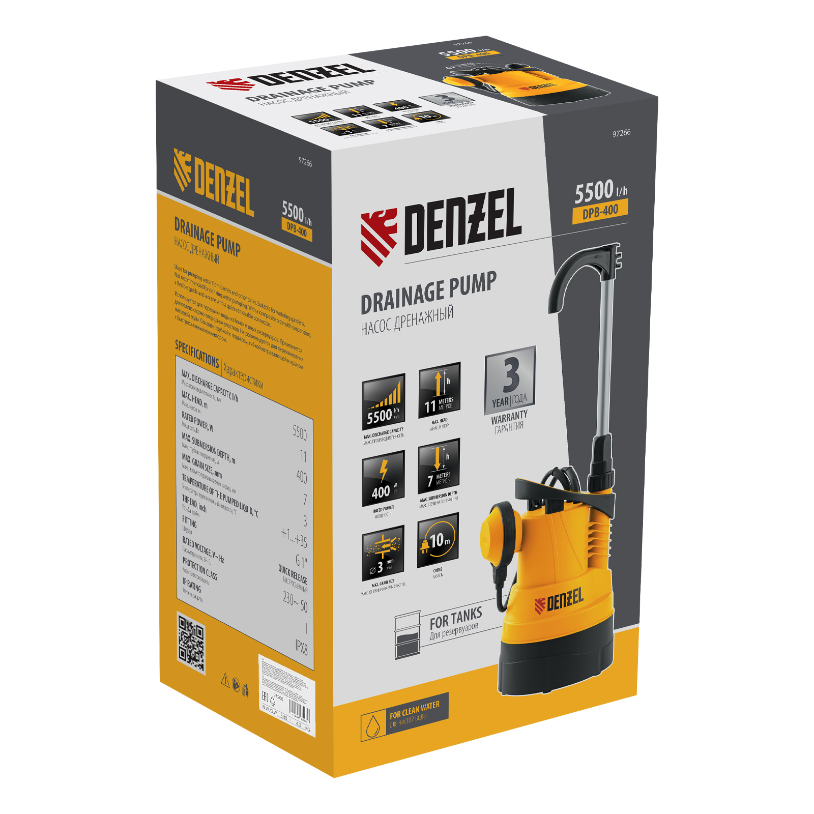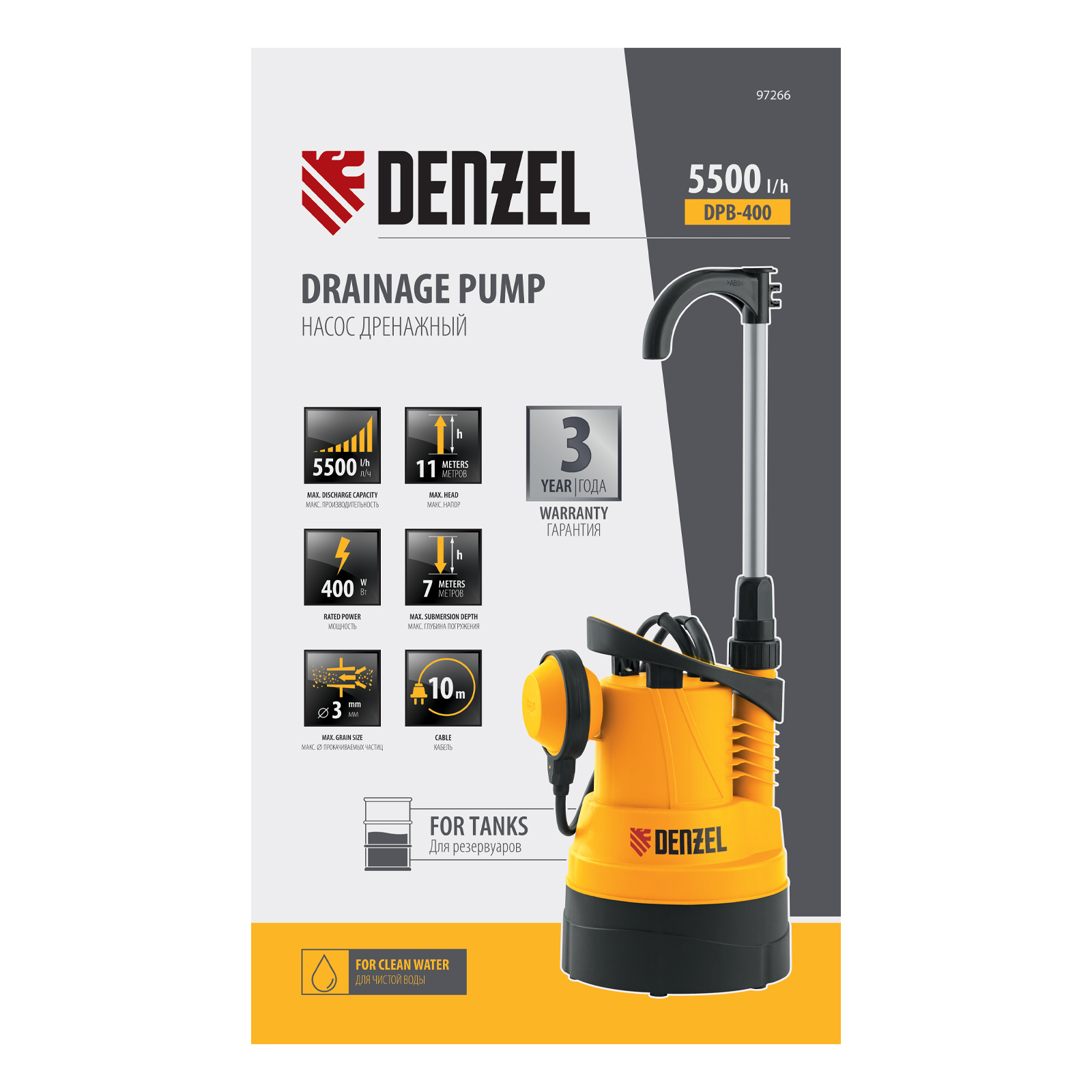 Дренажный насос для чистой воды DPB400, 400 Вт, подъем 11 м, 5500 л/ч Denzel в Москве