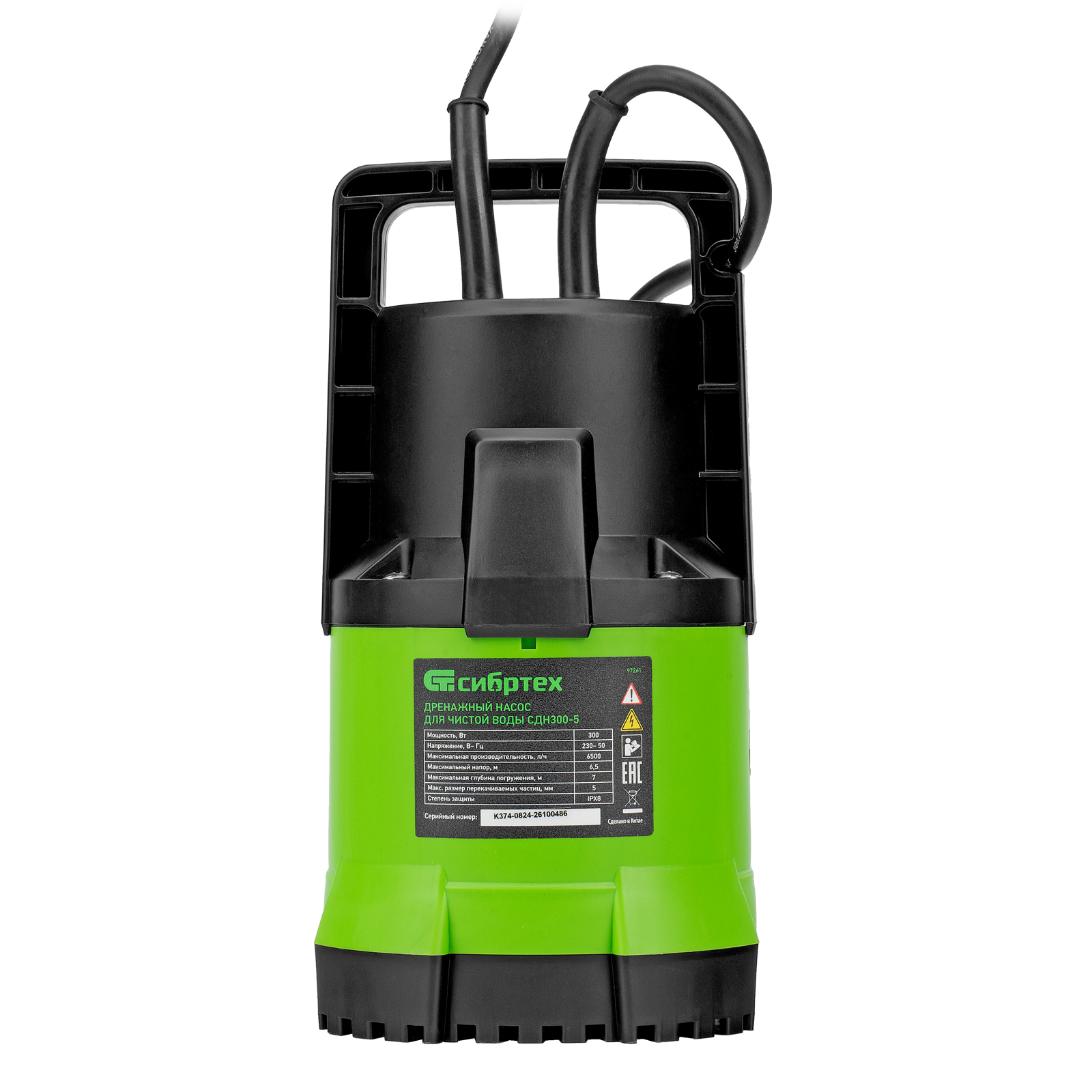 Дренажный насос для чистой воды СДН300-5, 300 Вт, напор 6.5м, 6500 л/ч Сибртех в Москве